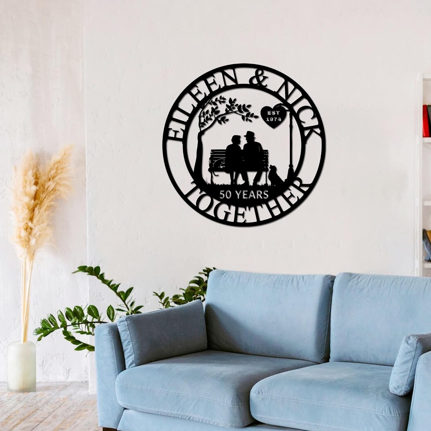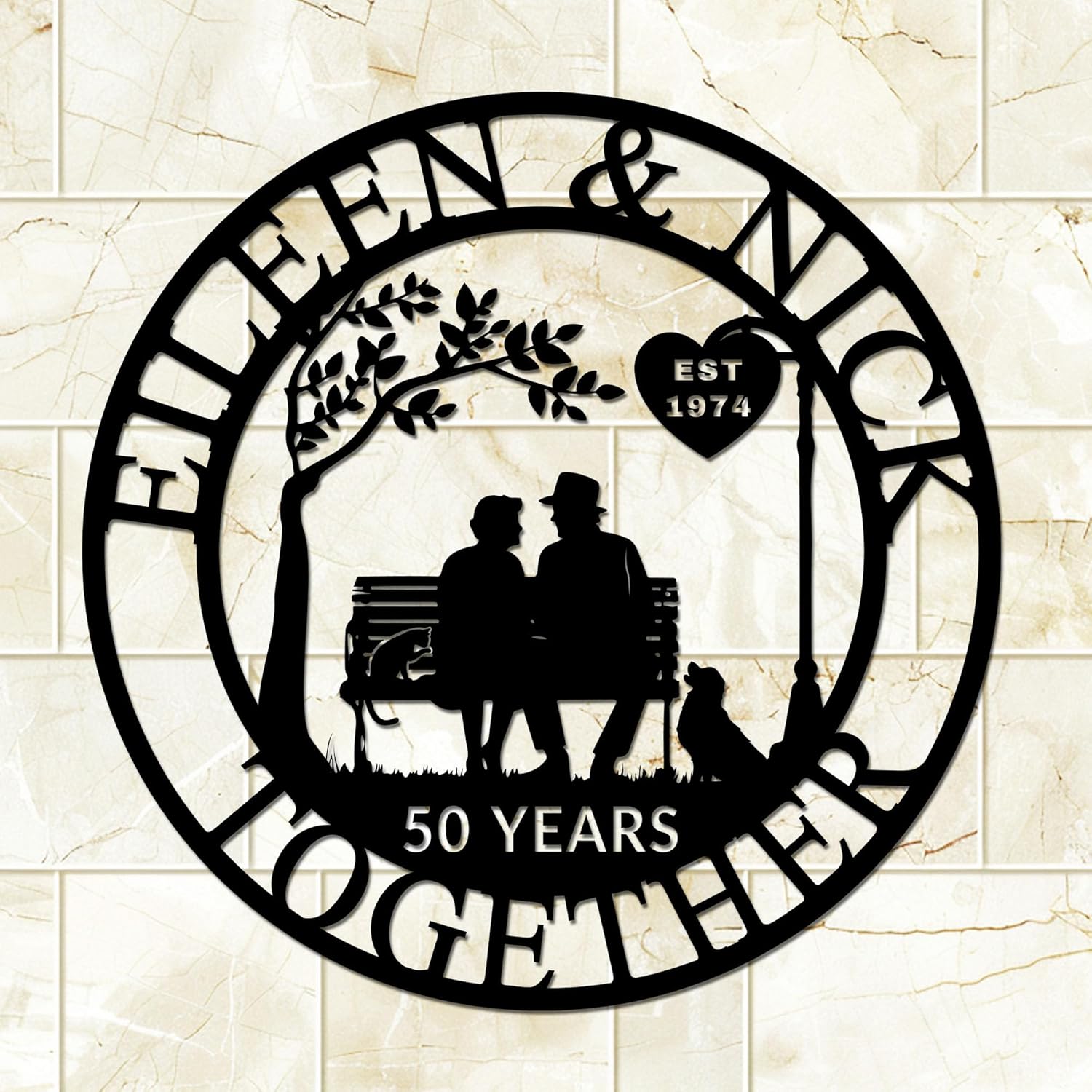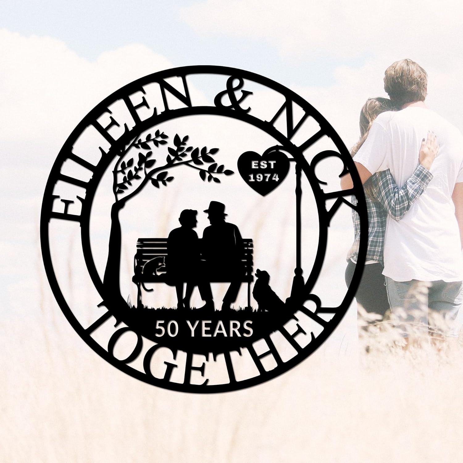Custom Wedding Anniversary Sign, Personalized Wedding Gifts for Parents, Custom Metal Couple Name Sign, 50th or Any Year Wedding Anniversary Metal Wall Art, for Husband Wife
