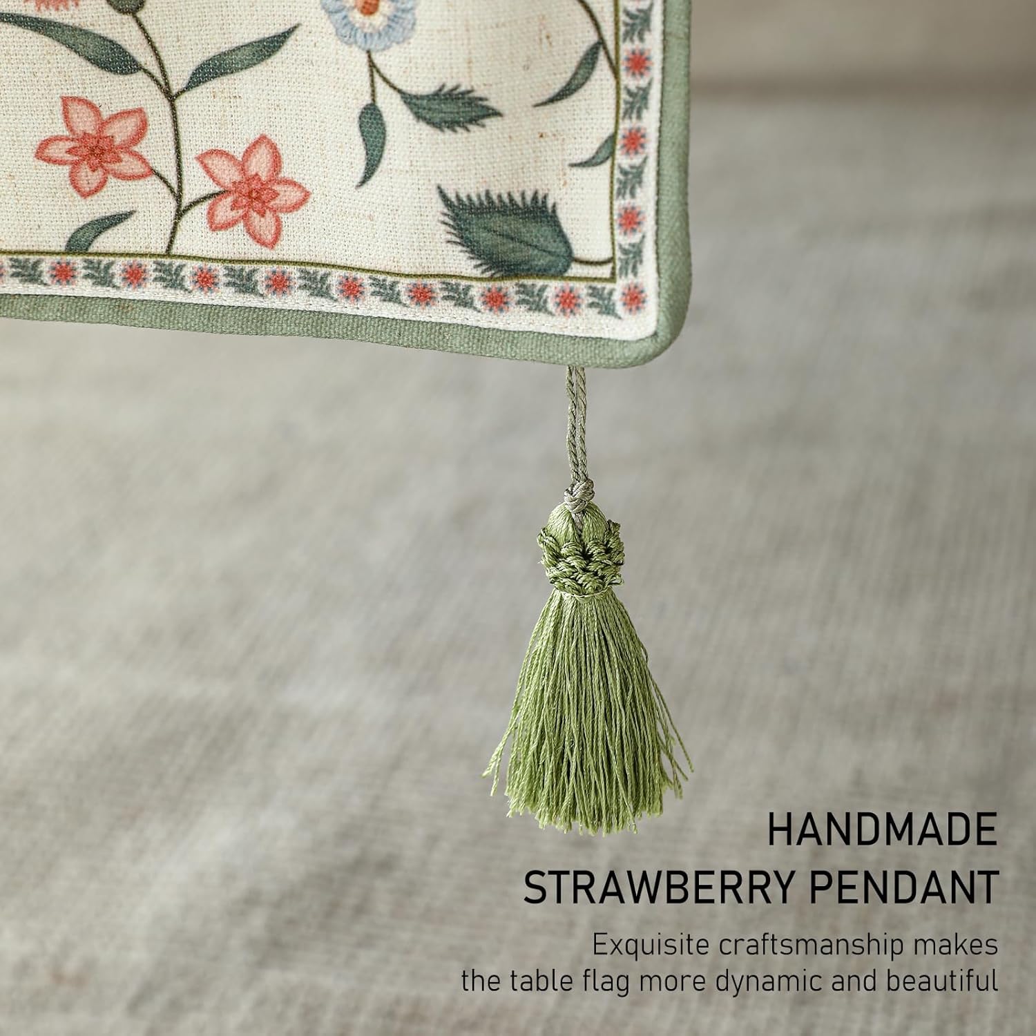 - Unique Design:Each table runner features patterns hand-drawn by our designers,showcasing exquisite details and rich textures for stunning visual appeal.The meticulous stitching ensures a smooth,wrinkle-resistant,and durable finish.With its fresh,rustic yet elegant style,it adds vibrancy and charm to your home decor
