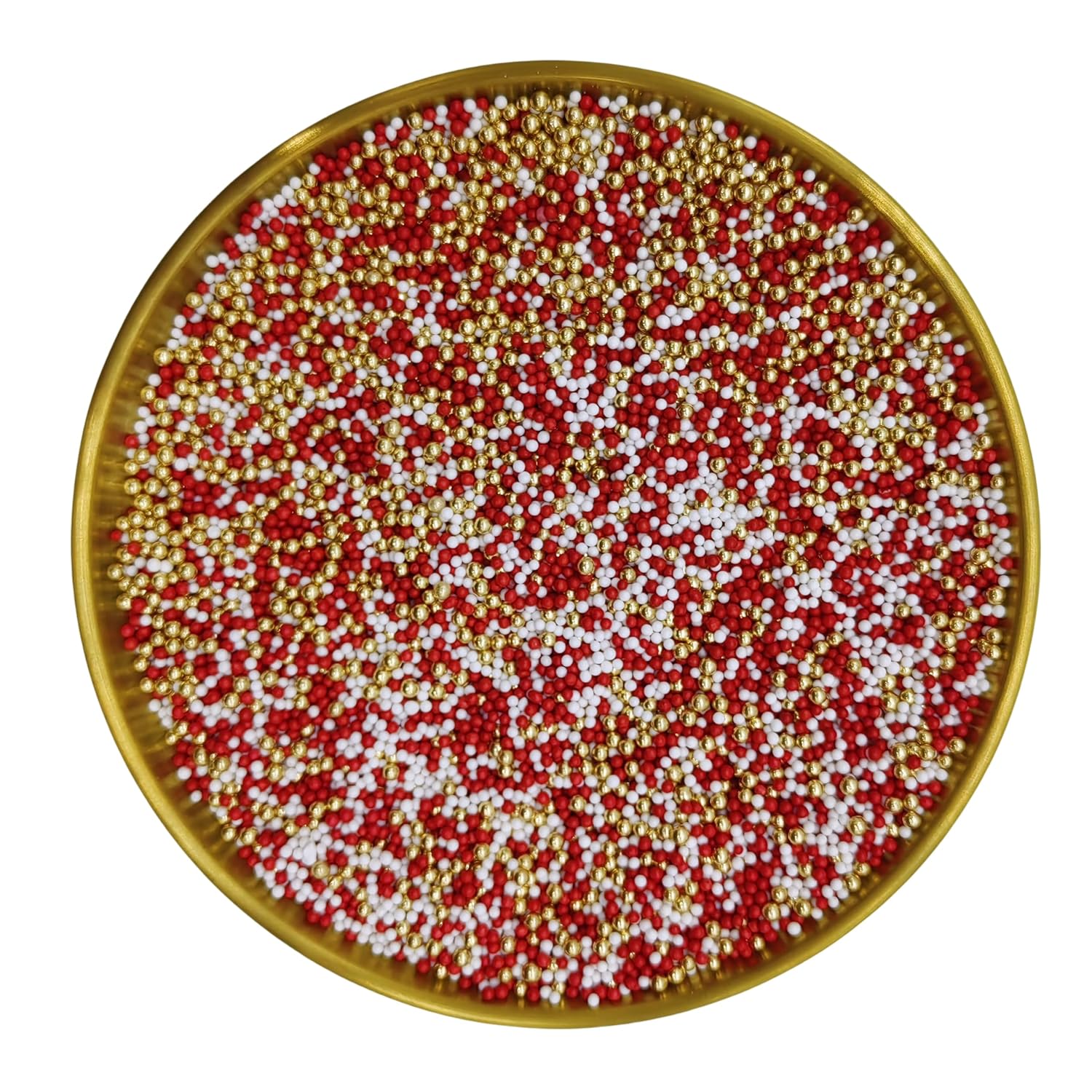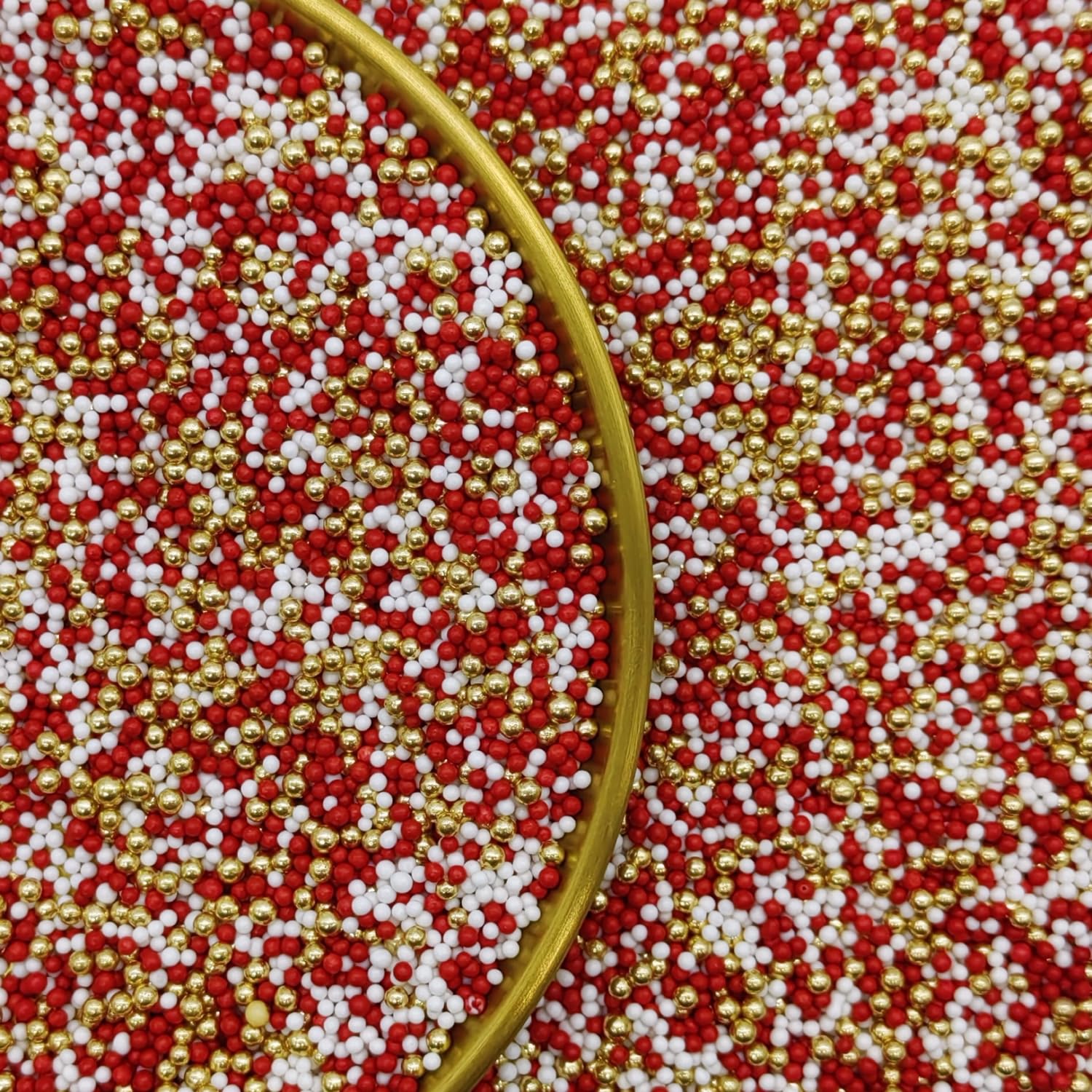 Edible Red & White & Super Gold Pearl Sugar Sprinkles Candy 2mm Mini Pearls Cake Decorations Cupcake Toppers Cookie Decorating Perfect for Wedding Party Valentine Halloween Christmas Supplies 3OZ