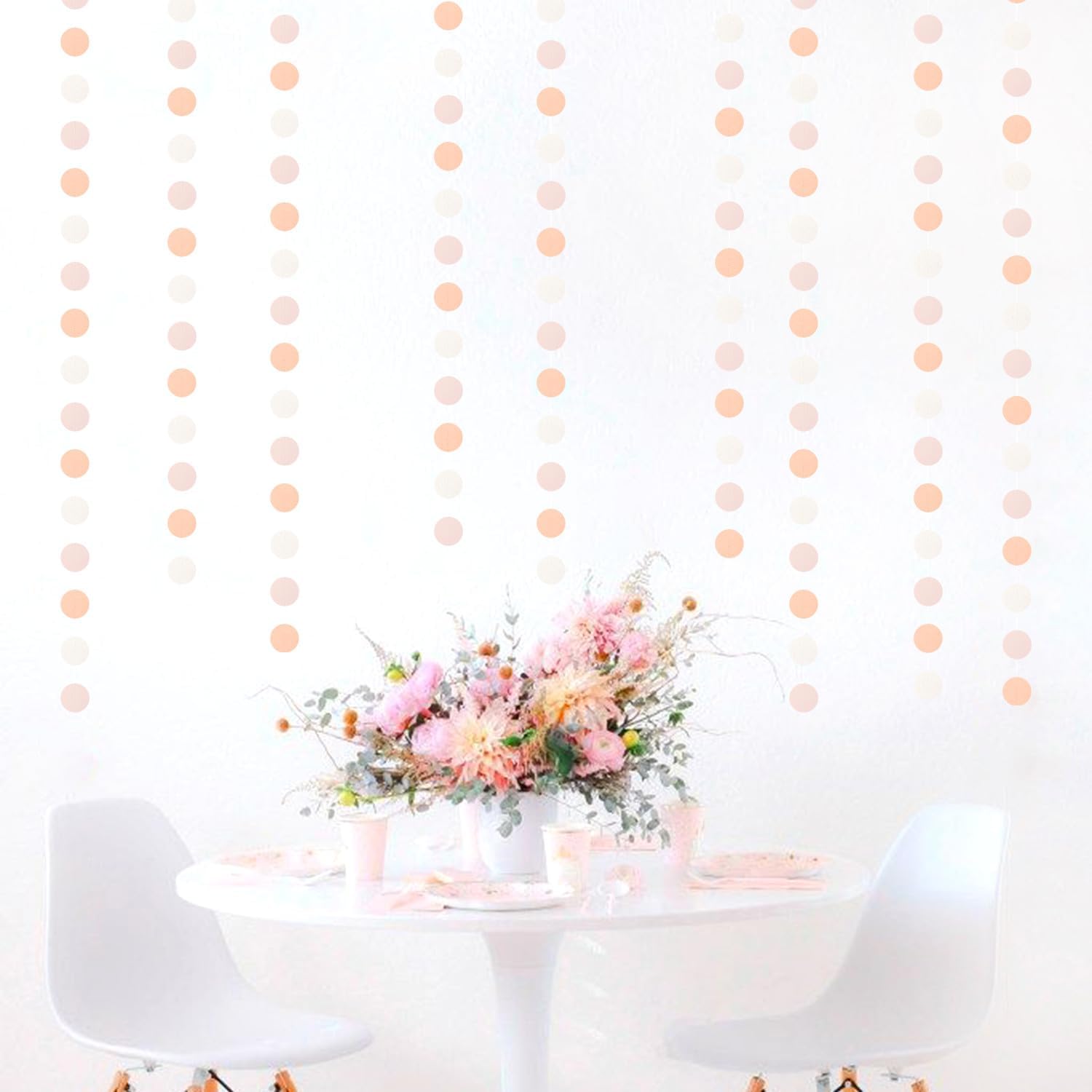 Peach-Pink White Party-Decorations Paper Garland - 52ft Princess Birthday Streamers Banner,Boho Bridal Baby Shower Bachelorette Wedding Hanging Supplies Decor Hugfond