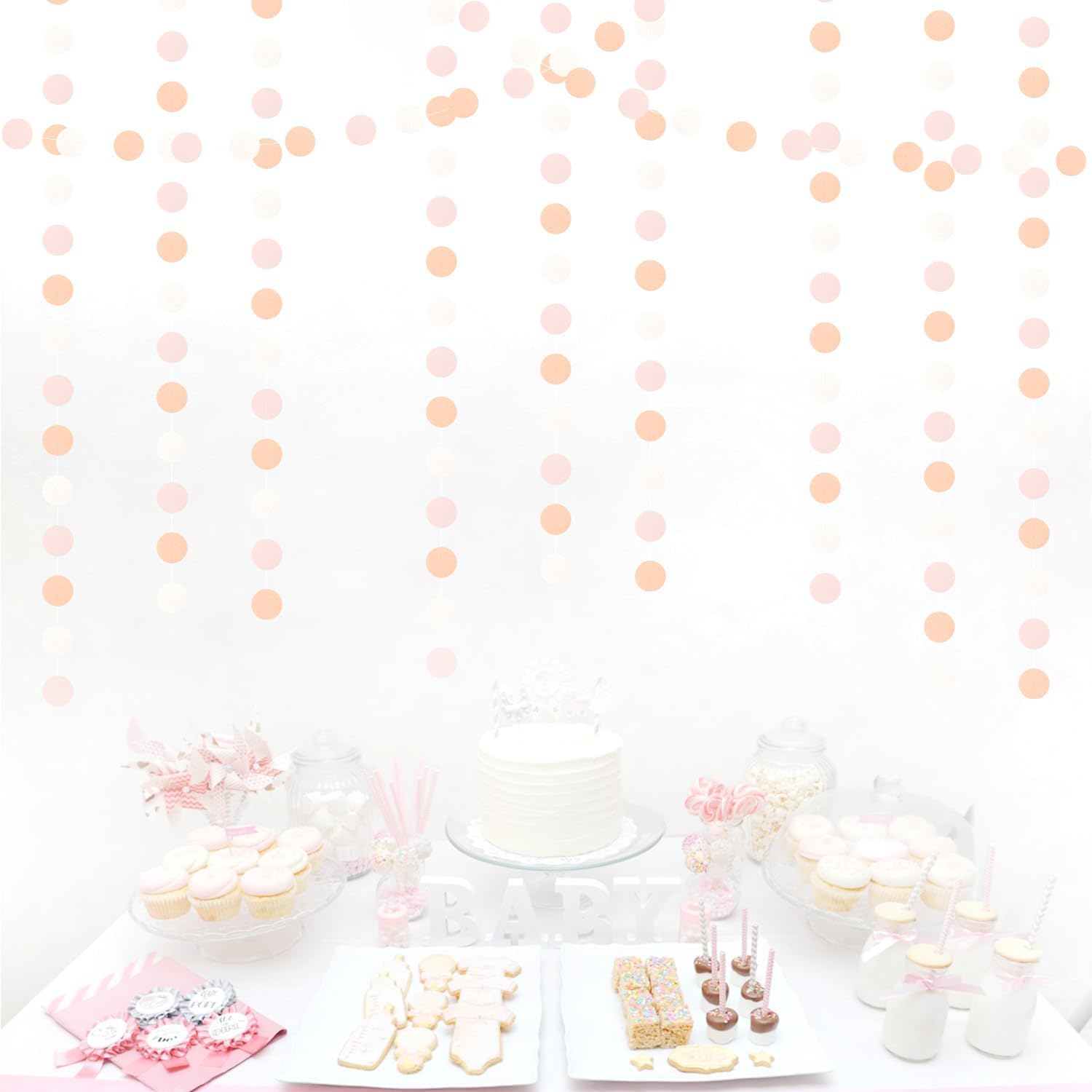 - 【Wide Use】These streamers garlands are great for indoor and outdoor events such as princess peach pink birthday decorations,boho baby shower baby shower, light pink party decor ceiling decorations.