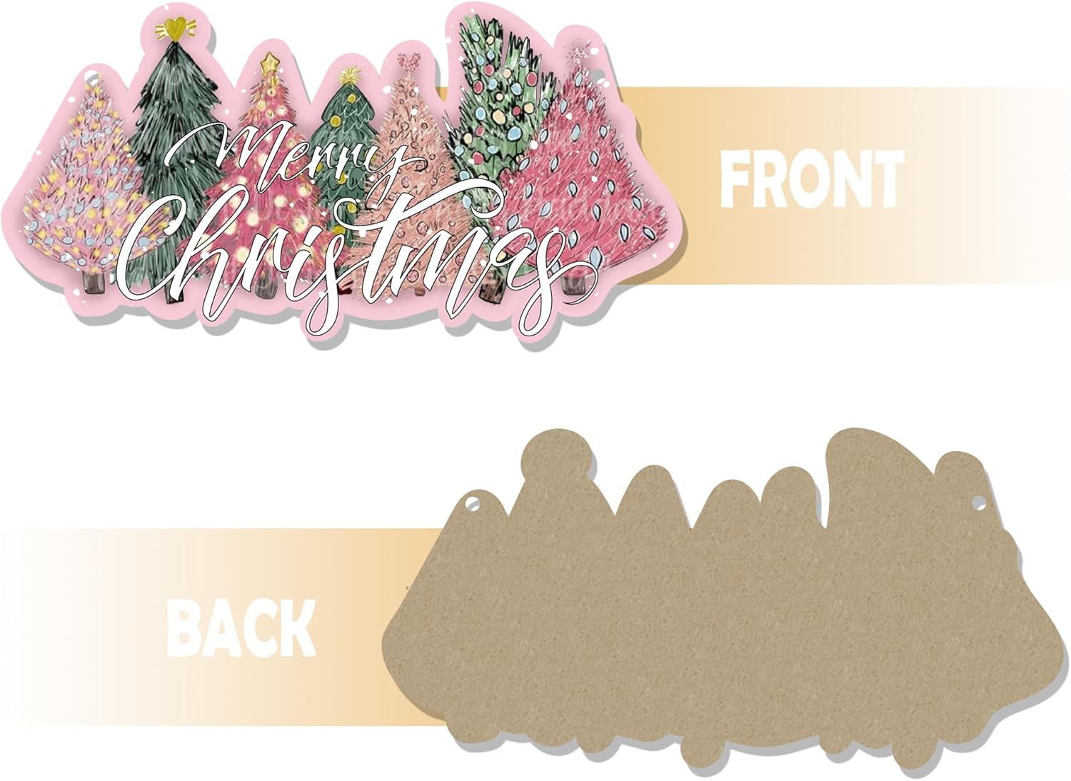 CGBHW Pink and Green Christmas Tree Wooden Sign, Merry Christmas Decoration Hanging Sign Wall Decor, Pink Christmas Holidays Theme for Home Office Girls College Dorm Door Decor 12 x 6 Inch