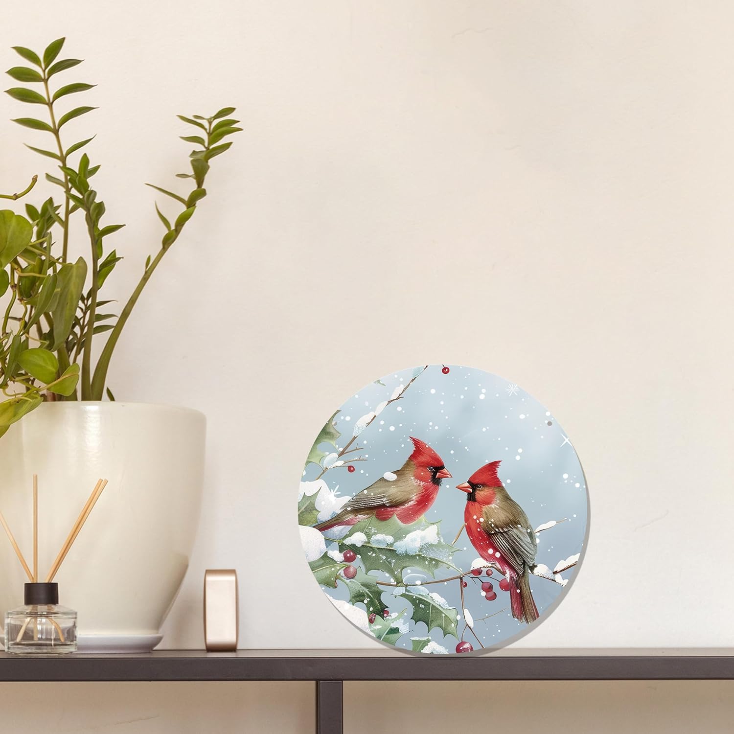 CGBHW Winter Christmas Cardinal Birds Wooden Sign, Winter Branches Berry Snowflake Snow Decoration Hanging Sign Wall Decor, Rustic Farmhouse Christmas Holiday Seasonal Wooden Sign for Home Door Decor 12 x 12 Inch