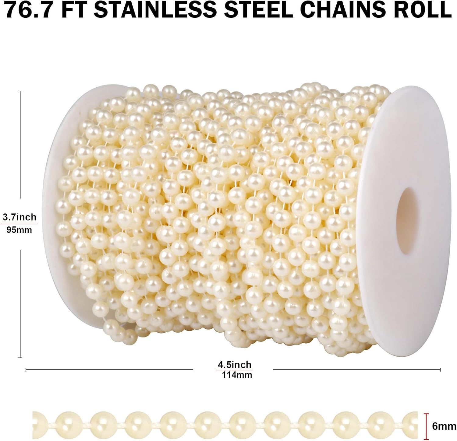 - ROLL SET: 6mm diameter pearl beads, 76.5 feet (23.4 meters) ivory color pearl beads garland roll spool.