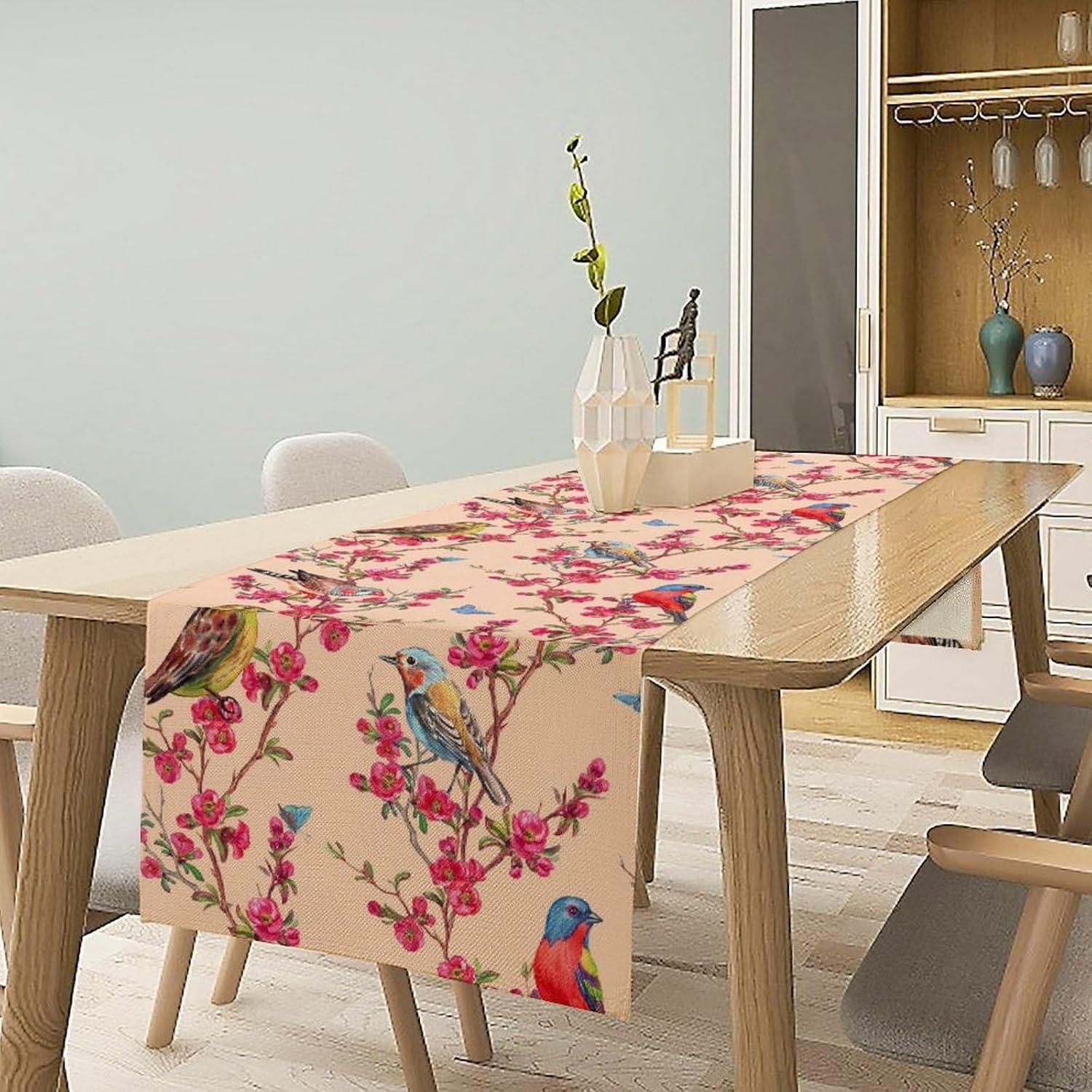 Floral Butterfly Table Runner Seasonal Spring Flower Bird Table Decoration Table Runner for Home Party Decoration 13x120 Inch