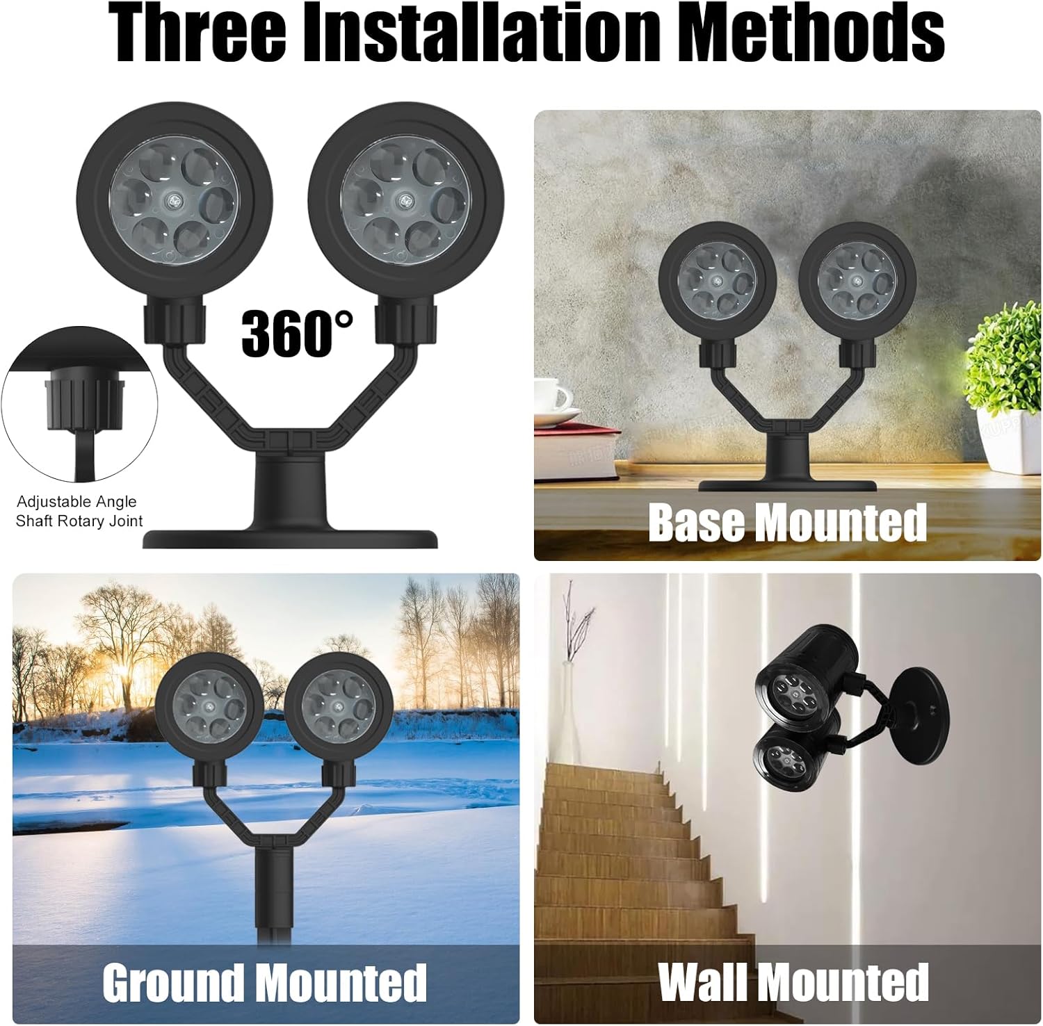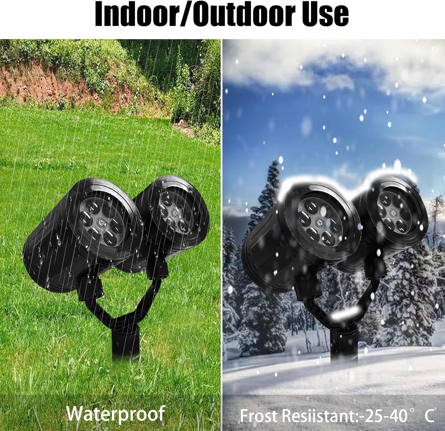 - Adjustable orientation and easy installation— Our easy-to-use Christmas projectors make your decorating mood easy and pleasant. Mount it on the wall, fasten it to the ground, or insert it into the lawn. And through multi-angle adjustment, create the perfect environment for your holiday decoration
