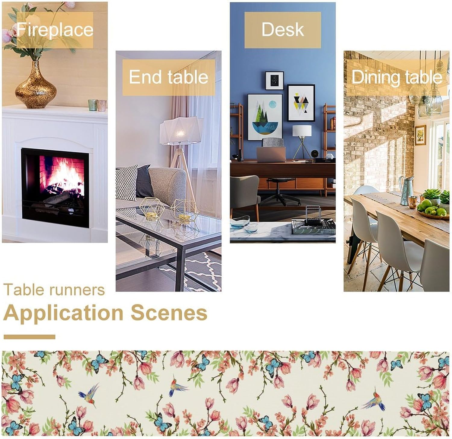 Floral Butterfly Table Runner Seasonal Spring Flower Bird Table Decoration Table Runner for Home Party Decoration 13x36 Inch