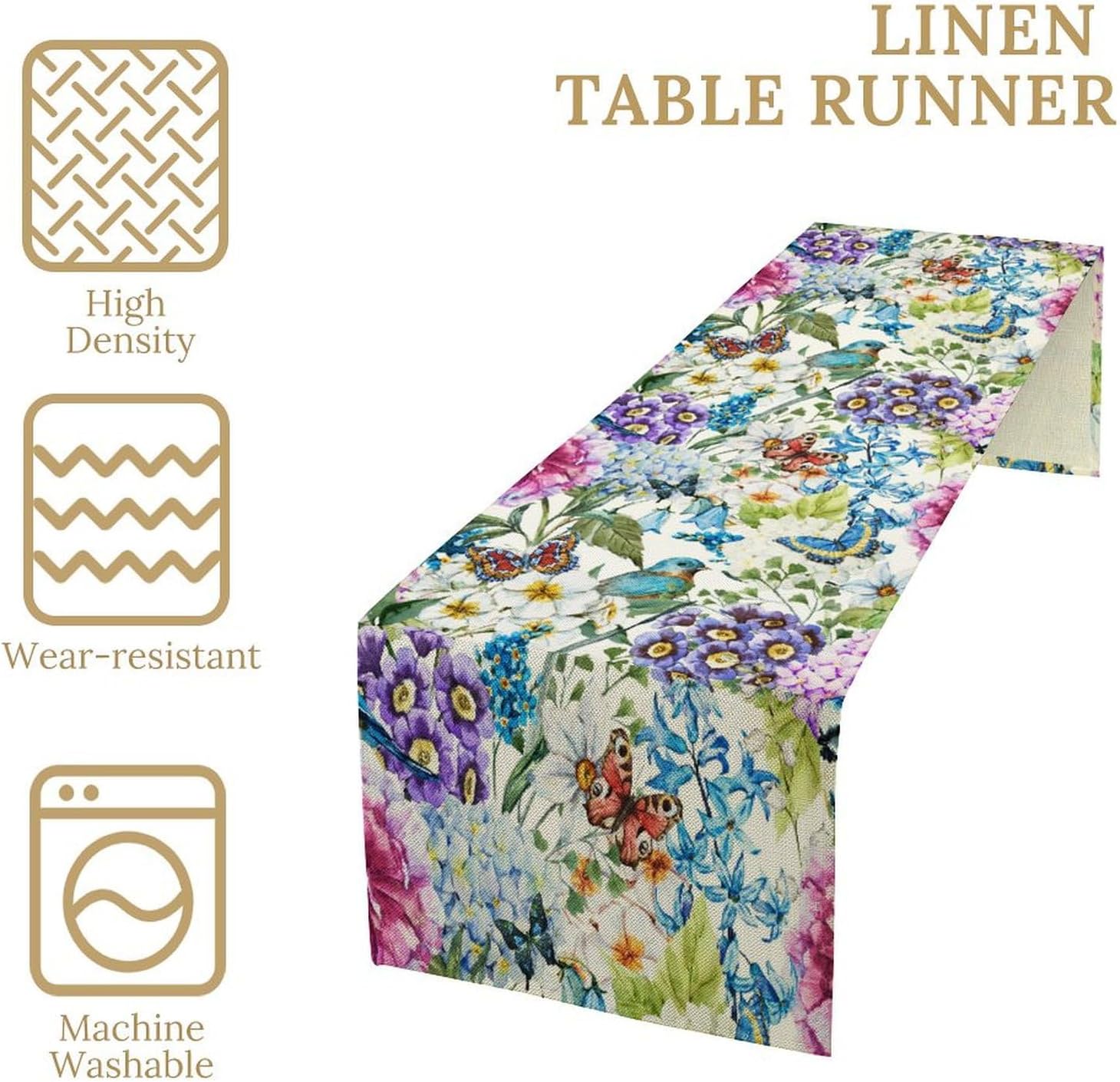 Brown Bird Floral Table Runner Spring Flower Kitchen Table Decoration Suitable for Family Dinner Decoration 13x120 Inch