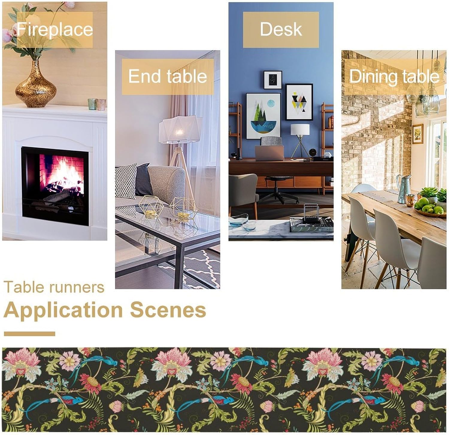 Floral Butterfly Table Runner Seasonal Spring Flower Bird Table Decoration Table Runner for Home Party Decoration 13x70 Inch