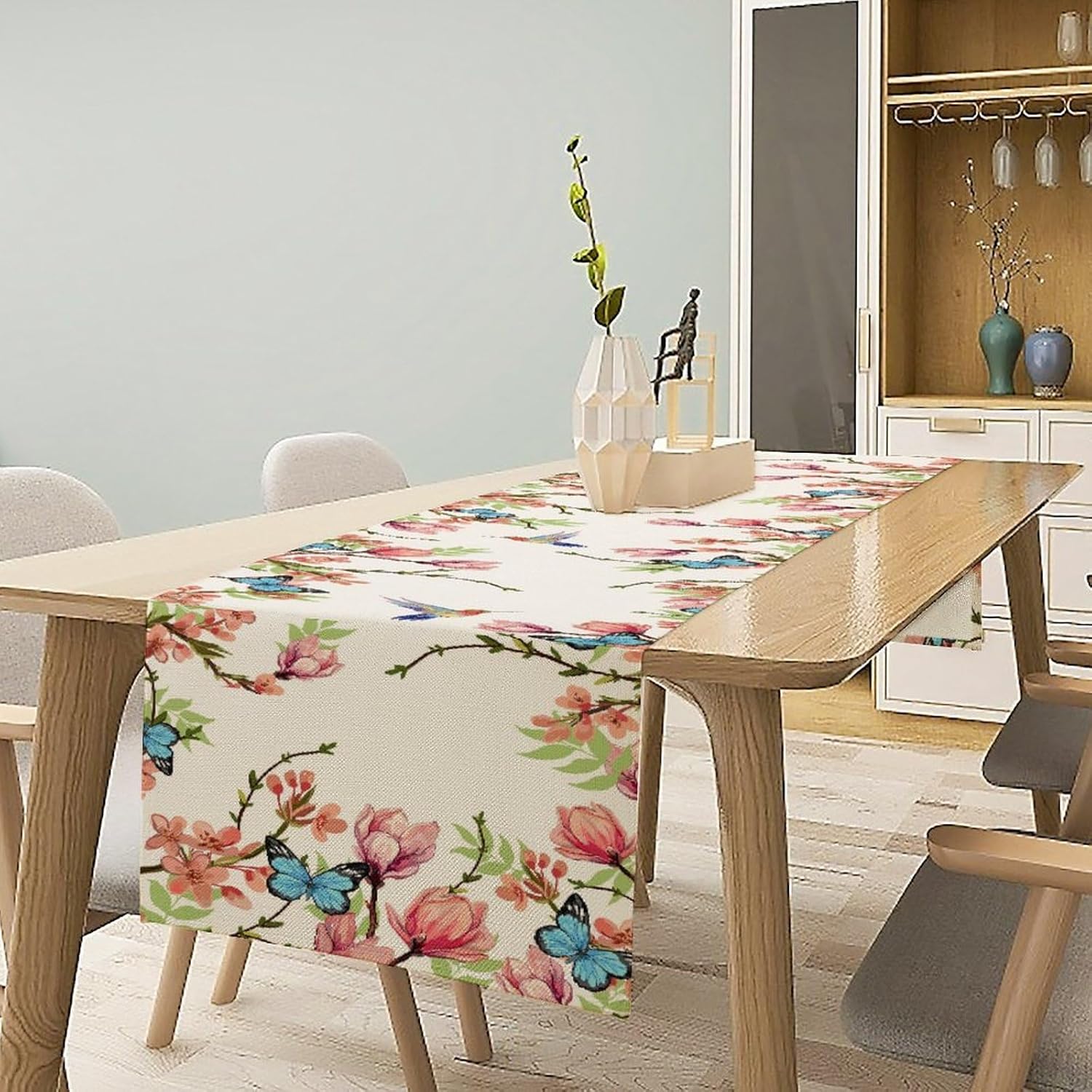Floral Butterfly Table Runner Seasonal Spring Flower Bird Table Decoration Table Runner for Home Party Decoration 13x120 Inch