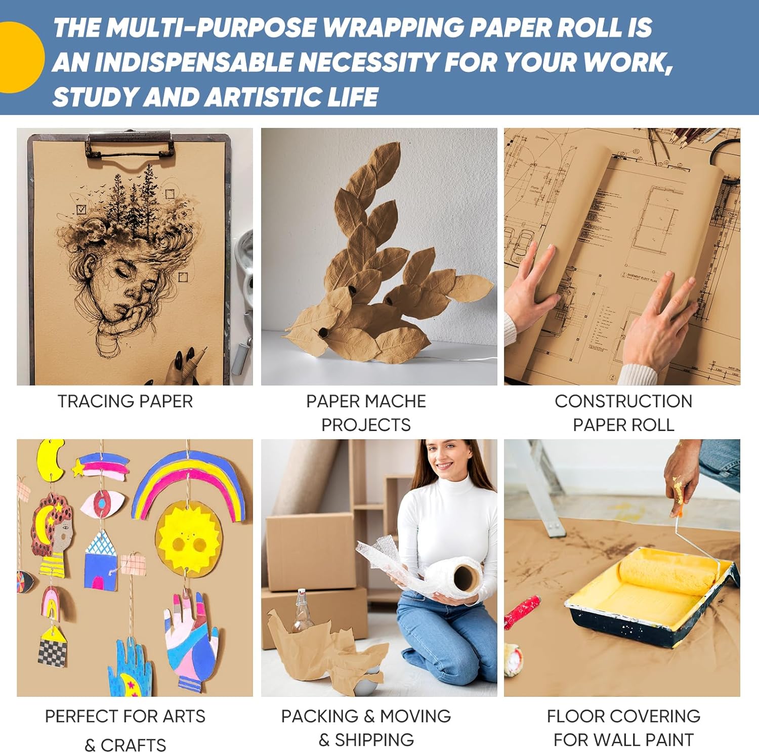 - 【Versatile Kraft Paper rolls】Our kraft paper rolls have a wide application for many things: decor, writing, drawing, sketching, painting, coloring, sketchpad, origami, easel paper, packing paper, poster paper, drafting paper, construction paper, wall art, paper mache paste, fun crafting, art making and more. Whether you are an artist, crafter, designer, DIY enthusiast, parent or teacher, this roll of vellum is a must have necessity in your kit