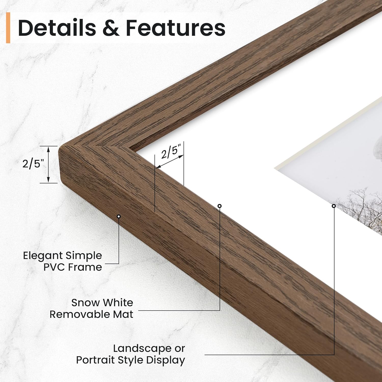 11x14 inch Picture Frame, 11x14 Photo Frames with 8x10 Removable Mat - High Definition Plexiglass - Vertical and Horizontal Display - Wall Hanging Frame - Walnut Color, 12 Pack