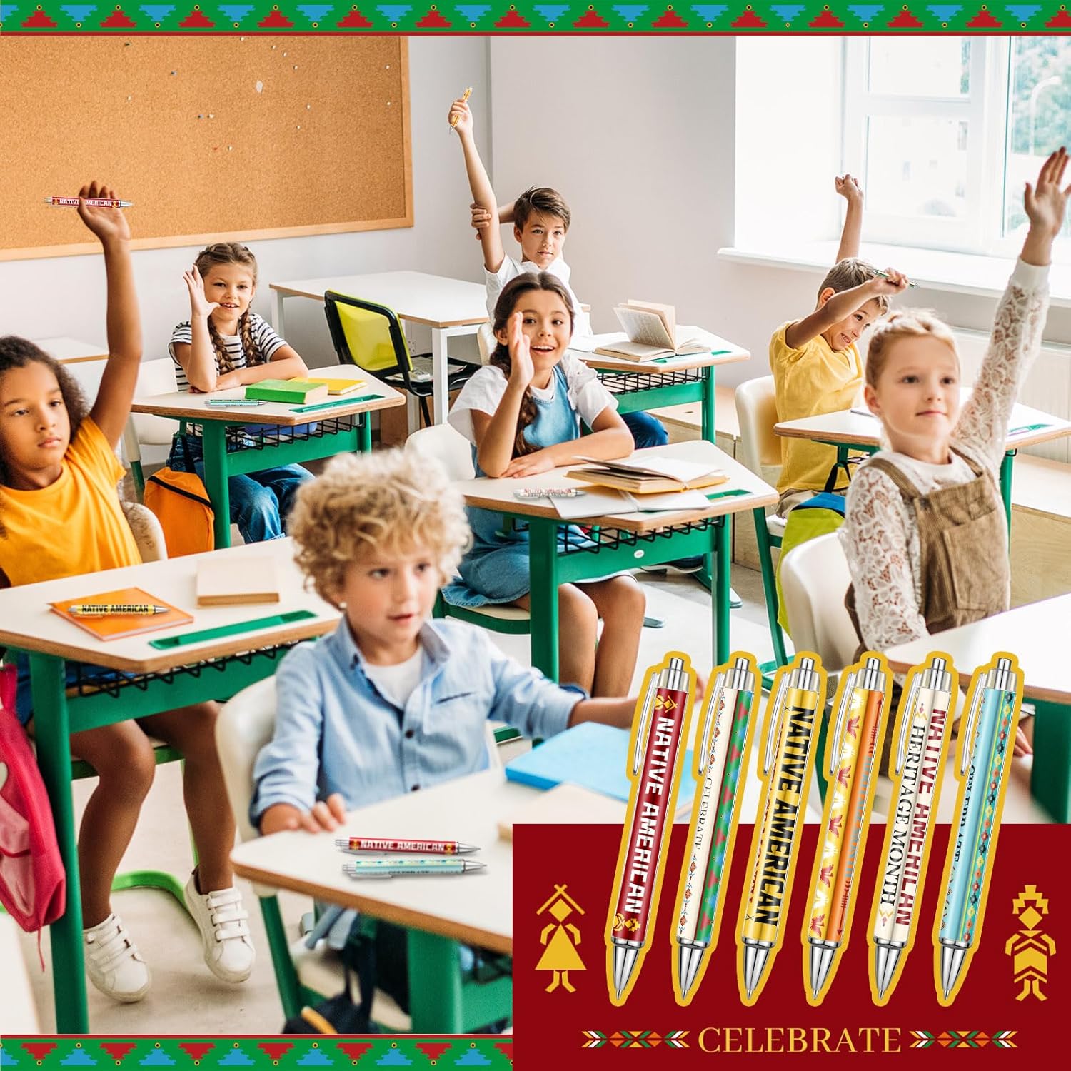 - What You Can Get: you'll get 24 native american heritage month appreciation gifts pens in 6 different patterns, 4 pieces of each, plenty of fun patterns to meet your daily needs; There are words [Celebrate Native American Heritage Month] on the pens, which are full of gratitude