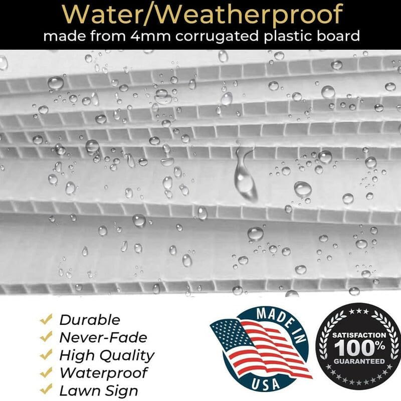 - These human rights yard signs are using weatherproof corrugated plastic sign material, high-quality corrugated plastic which can withstand almost any weather condition but remain bright, colorful, and intact. These materials are weather-resistant, making them suitable for indoor and outdoor use.
