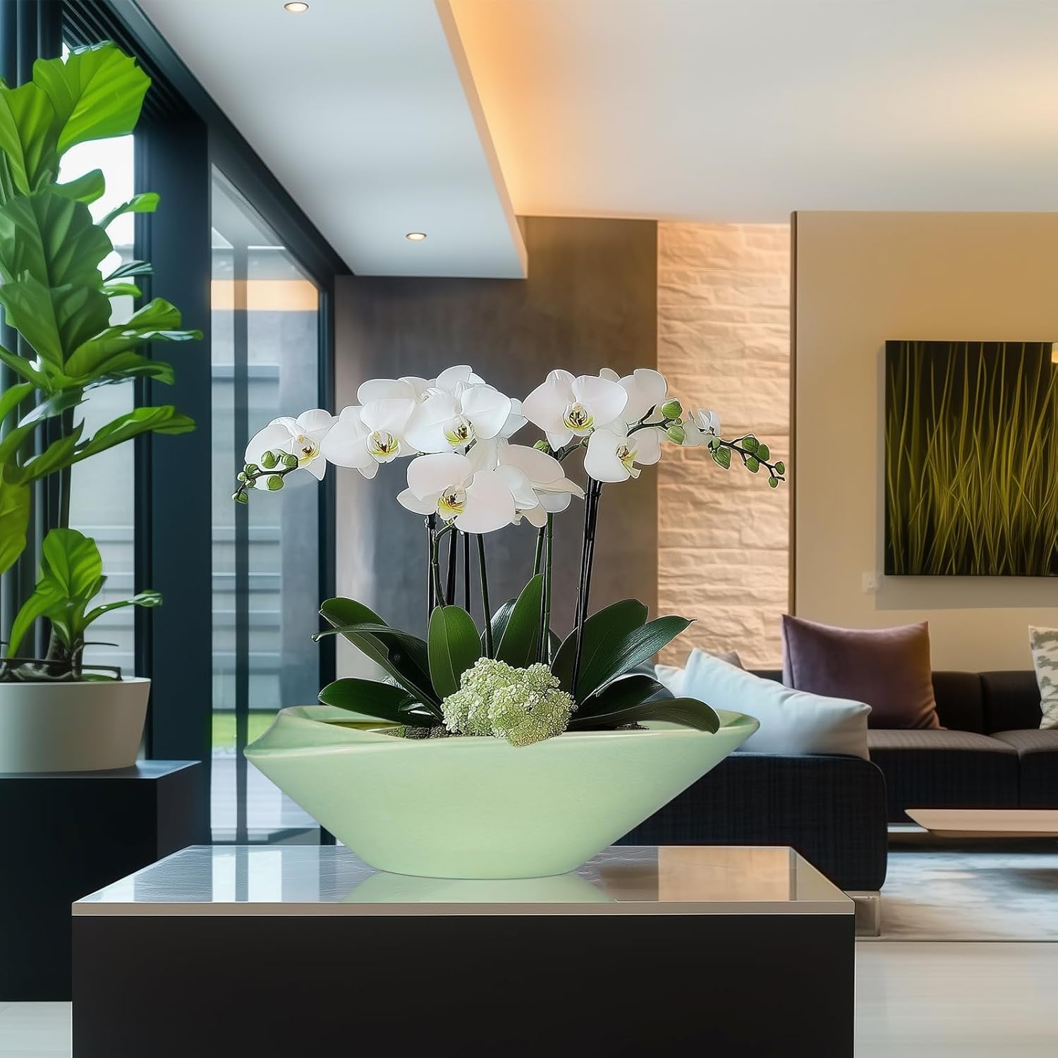 - 18 Inch Planter for Home Decor: The modern style large light green bonsai pot for plants that can be placed on a table, living room, balcony, patio, garden, and other places
