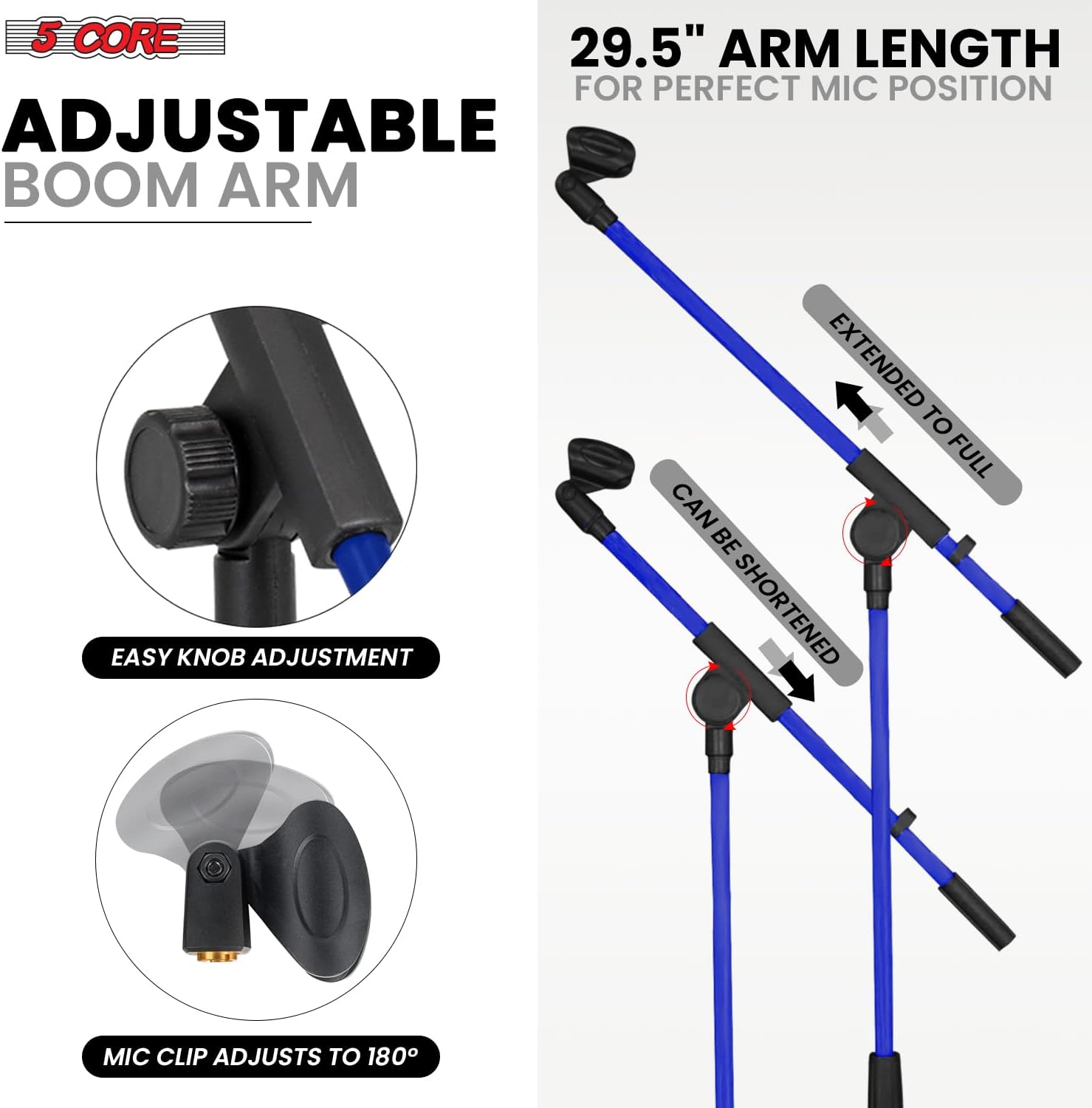 5 Core Tripod Mic Stand Floor Adjustable 18 to 72 Inches Sturdy Boom Arm Holder Microphone Stands Pedestal Para Microfono for Singing - MS 080 SKY D-BLU