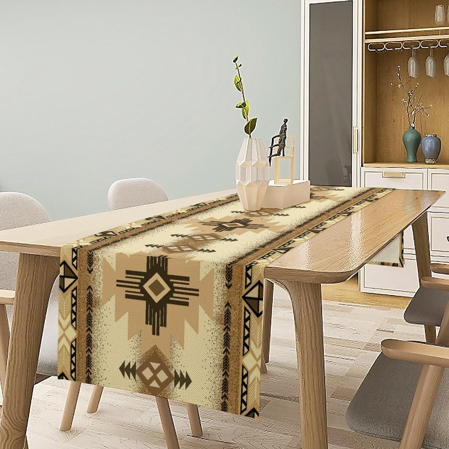 Aztec Table Runner Southwestern Ethnic Style Geometric Navajo Tribe Abstract Pattern Vintage Rustic Table Dinner Table Runner 13x108 Inch
