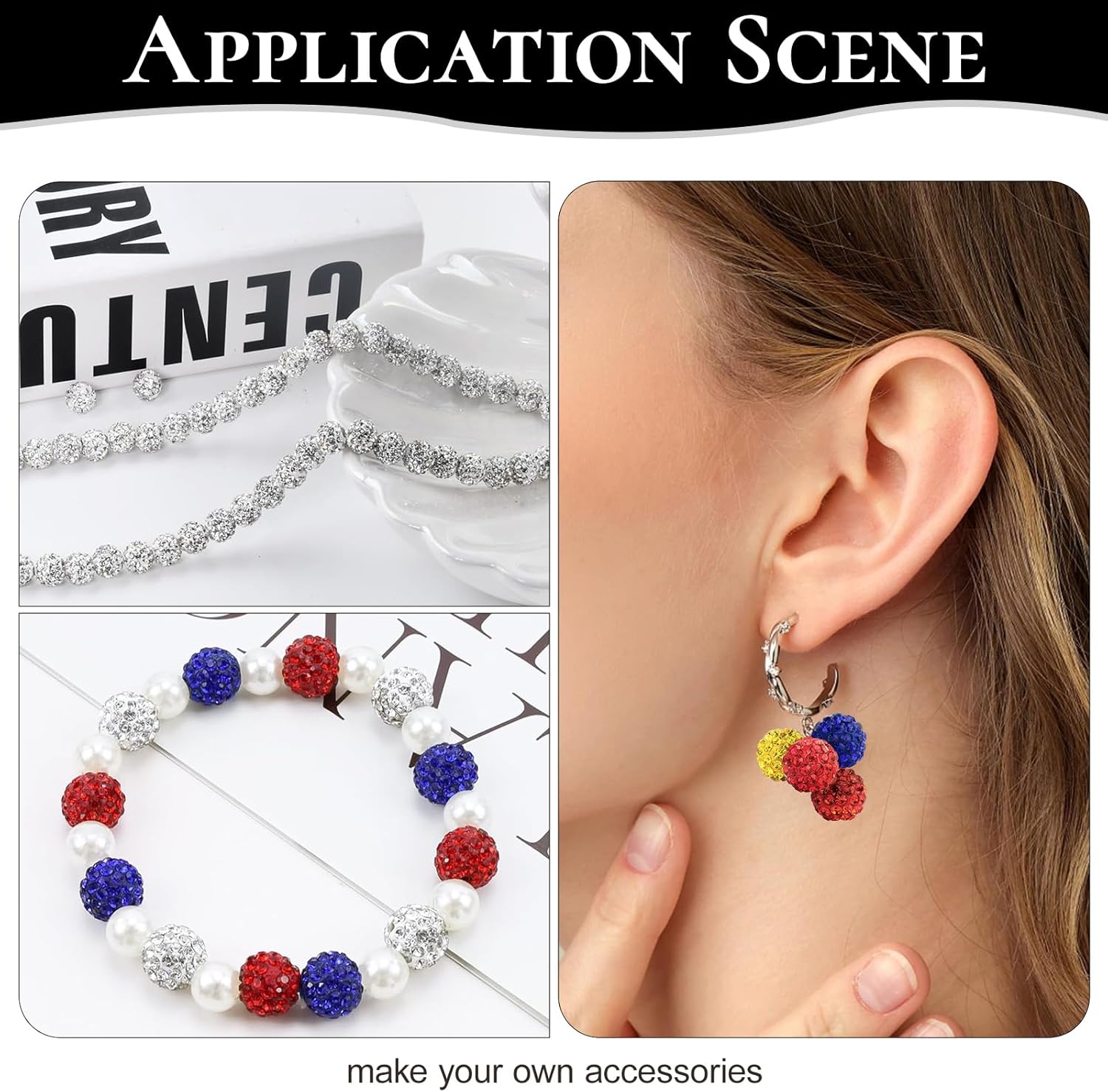 - UNIFORM RHINESTONE BALLS: Round clay beads are decorated with six rows of full diamonds, and high-quality glass rhinestones are evenly distributed on the surface of the sphere, giving the overall visual layering of the beads. The beautifully shaped clay rhinestone beads are as colorful as disco balls, making the handmade jewelry richer.