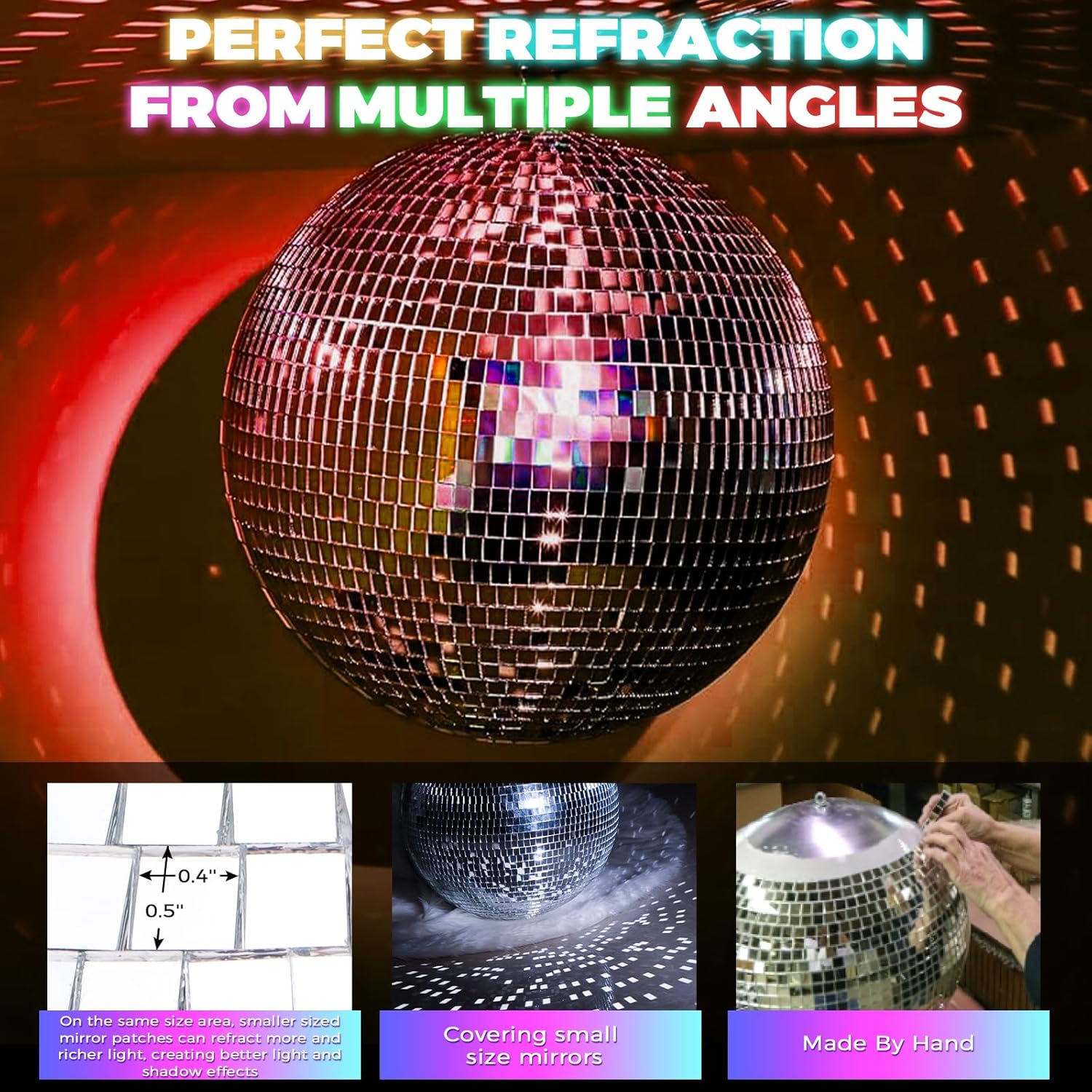 - Impressive 16-inch Size for Stunning Visuals: Our large 16-inch disco ball is designed to become the focal point of any party or event, reflecting light in a dazzling display that captivates guests and sets the perfect party atmosphere