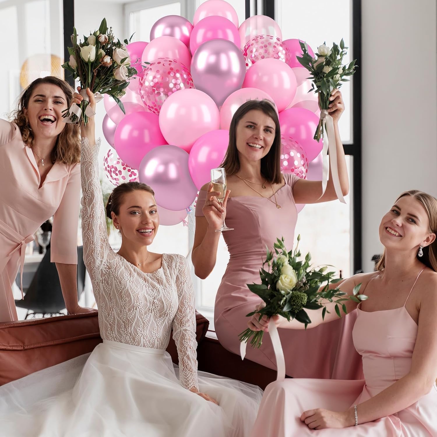 - For Most Scenarios - Graduation, baby showers, and girls' birthday parties bridal gathering, it is easy to embellish door frames, doorways, hallways, ceilings, walls or other ideal places. Hot pink balloons with confetti pink balloon are overflowing with elegance and joy, bringing a different atmosphere to anniversaries, weddings, and more.