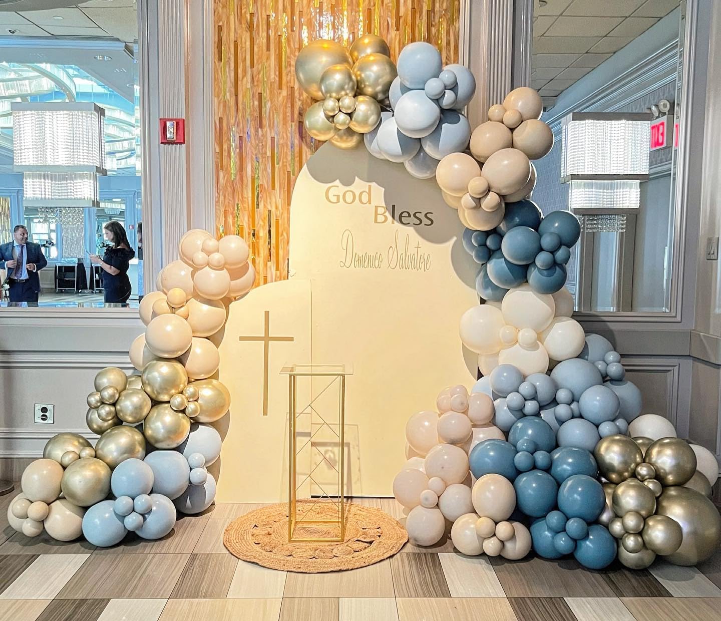 - What You Get - The dusty blue balloons include 50 balloons, 5 distinct colors: retro ice mist blue balloons x 15, macaron blue balloons x 15, metallic champagne gold balloons x 5, sand white balloons x 10, confetti gold balloons x 5. Accompanying by a 10m ribbon. These striking and captivating hues will beautifully enhance your memorable and enjoyable moments!