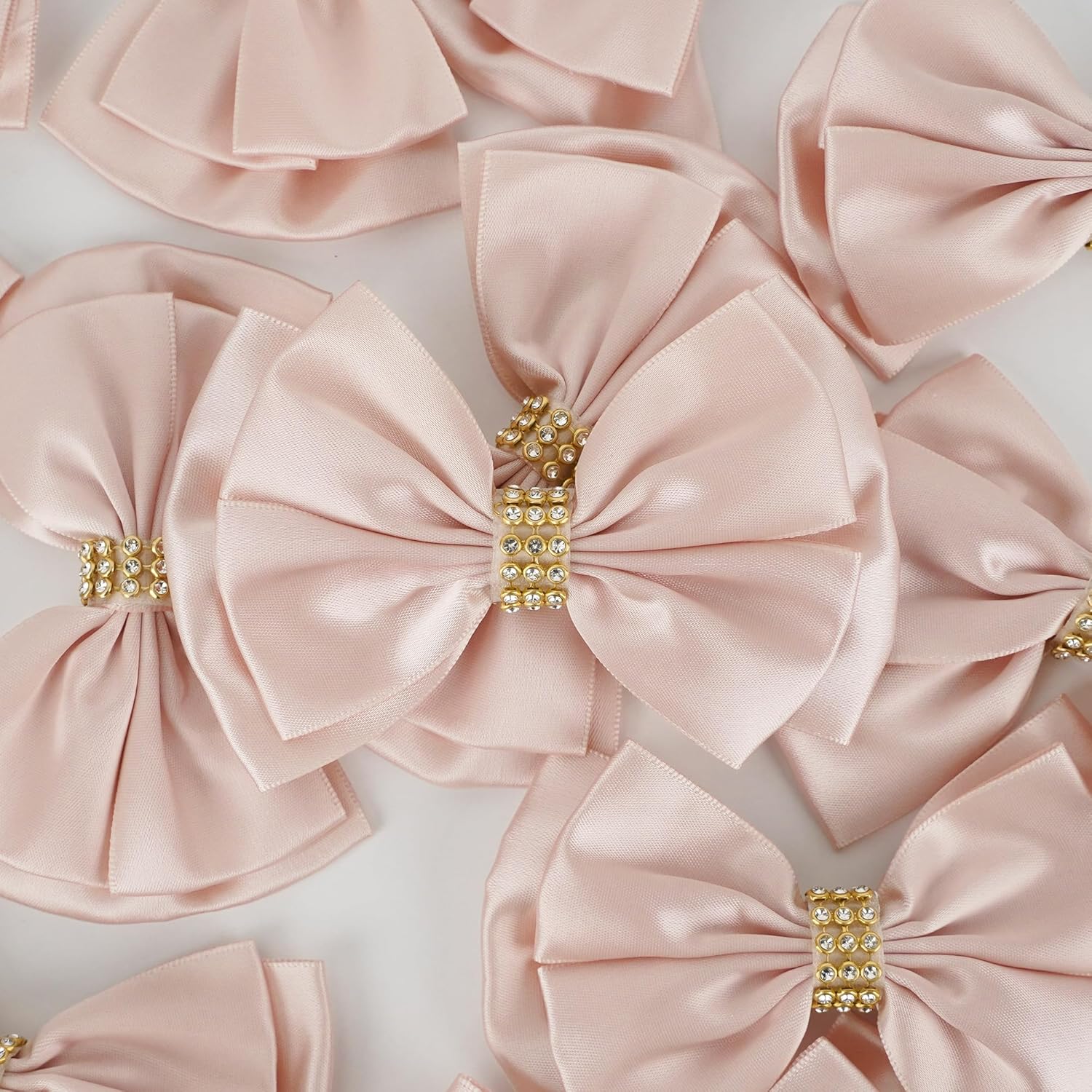 Pink Ribbon Bow 4'' Premade Satin Bows, Pink Gift Bows with Rhinestone, Rose Gold Bow for Presents, Greeting Cards, Treat Bags, Wine Bottle, Valentines Bows for Gift Wrapping-12 Counts