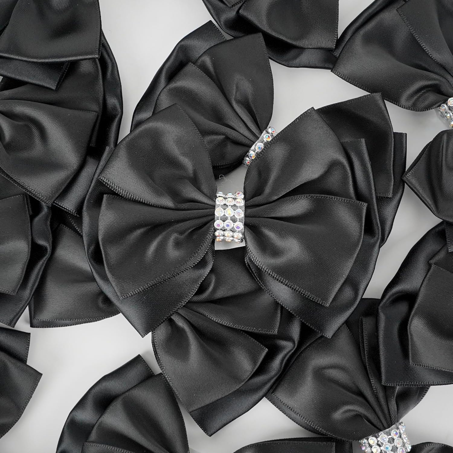Black Satin Bows 4'' Premade Black Ribbon Bows, Gift Bows with Rhinestone, Wrapping Bows for Presents, Greeting Cards, Treat Bags, Wine Bottles, Valentines Bows for Gift Wrapping-12 Counts