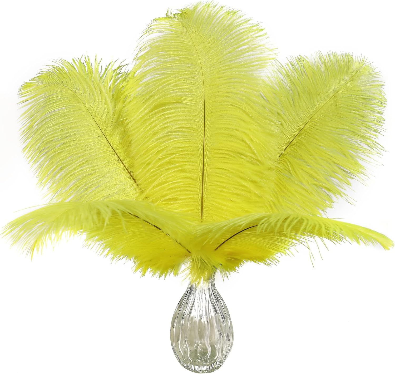 Ballinger Fluorescent Yellow Ostrich Feathers - 24Pcs 12-14inch Long Feathers Bulk for Vase, Party Centerpieces, Mardi Gras Decorations and Home Decor