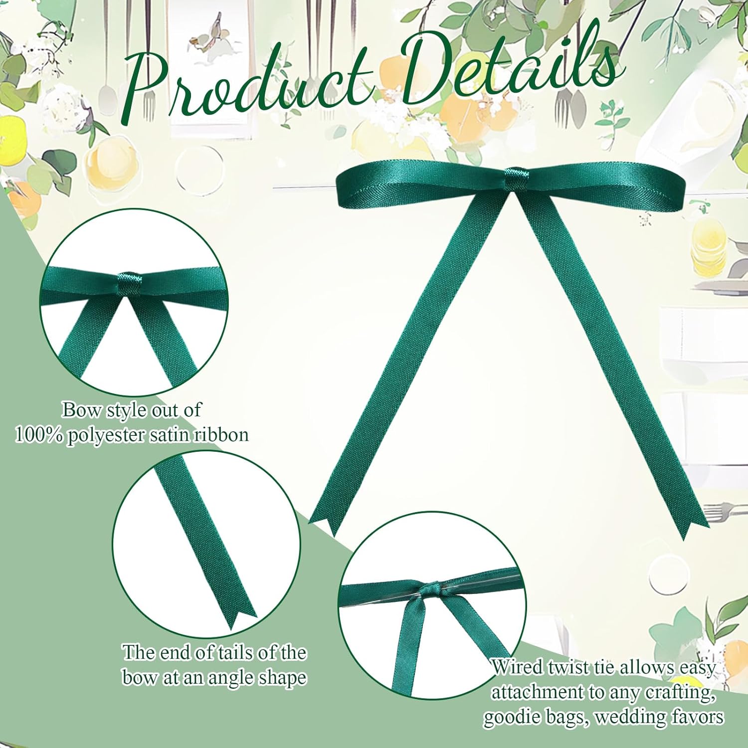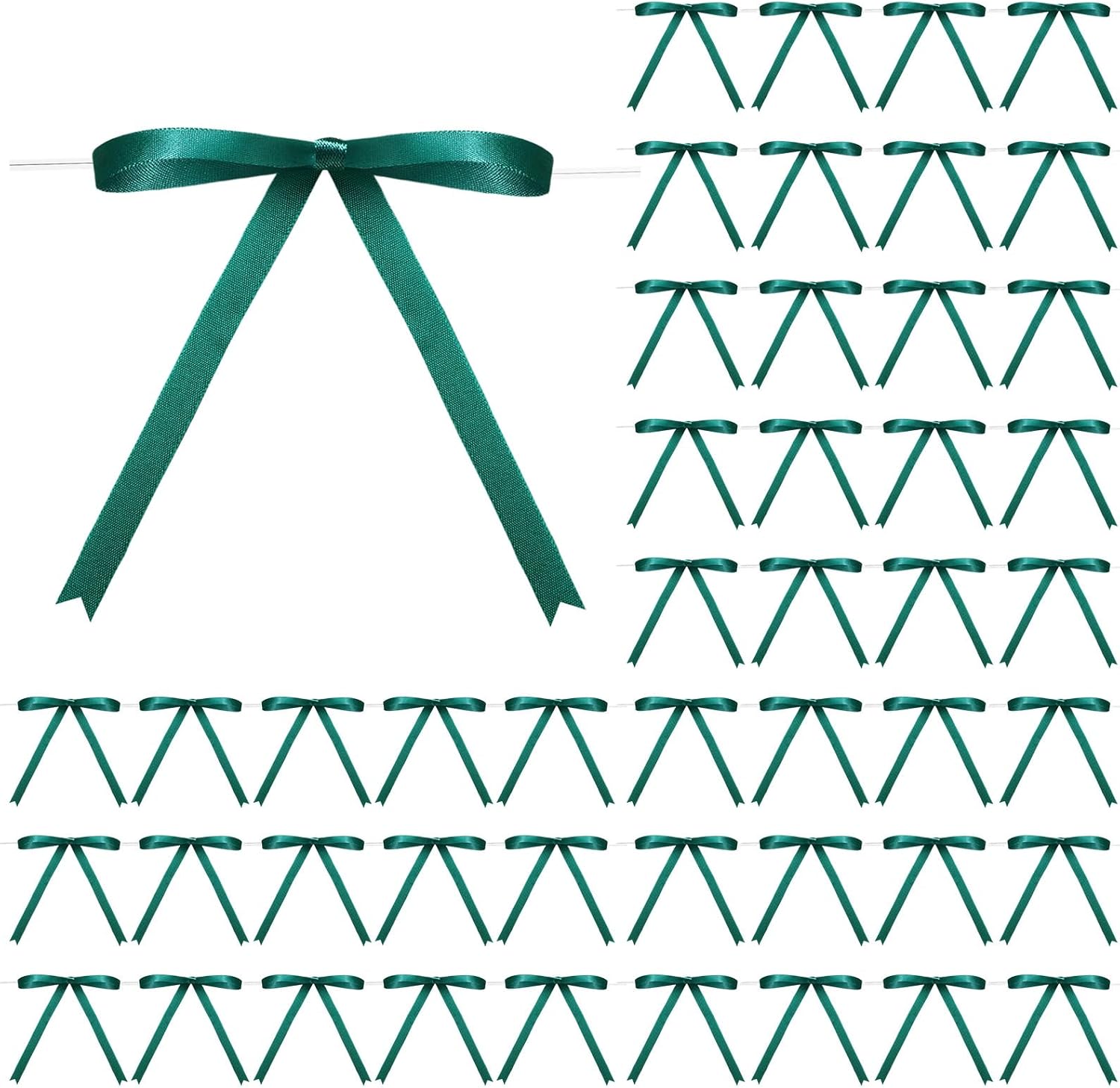 - Green Twist Tie Bows: our package includes 100 green ribbon bows and 100 twist ties; This set will easily meet your various needs for decoration or DIY projects; The dimensions of our bow are approximately 5 x 7 inches/ 12.7 x 17.78 cm; The decent size is suitable for decorating gifts, packages, and other items; You can have fun with family and friend making eye catching decorative pieces by DIY
