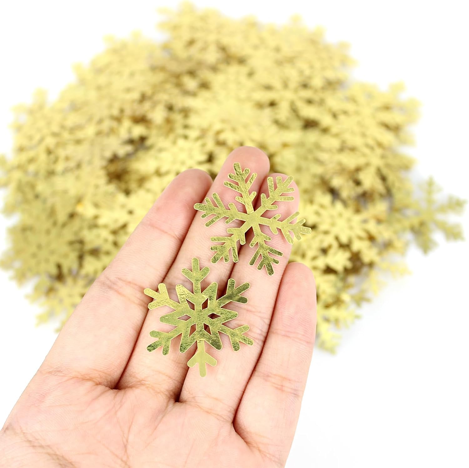 - Value package.The gold christmas confetti pack includes 200pcs snow flakes,surely sufficient for your baby girl or boy birthday,even bridal shower engagement party decor and serve all the purpose for your winter party event.
