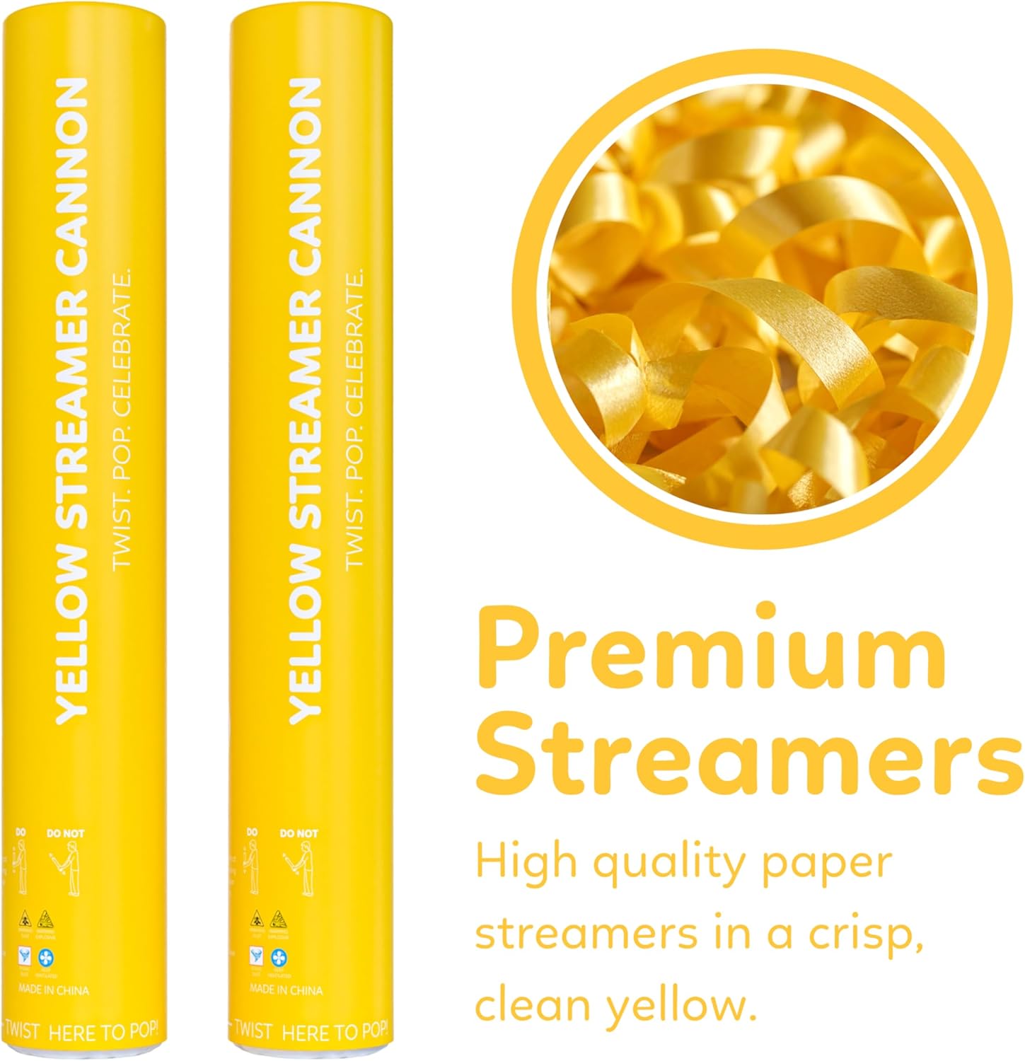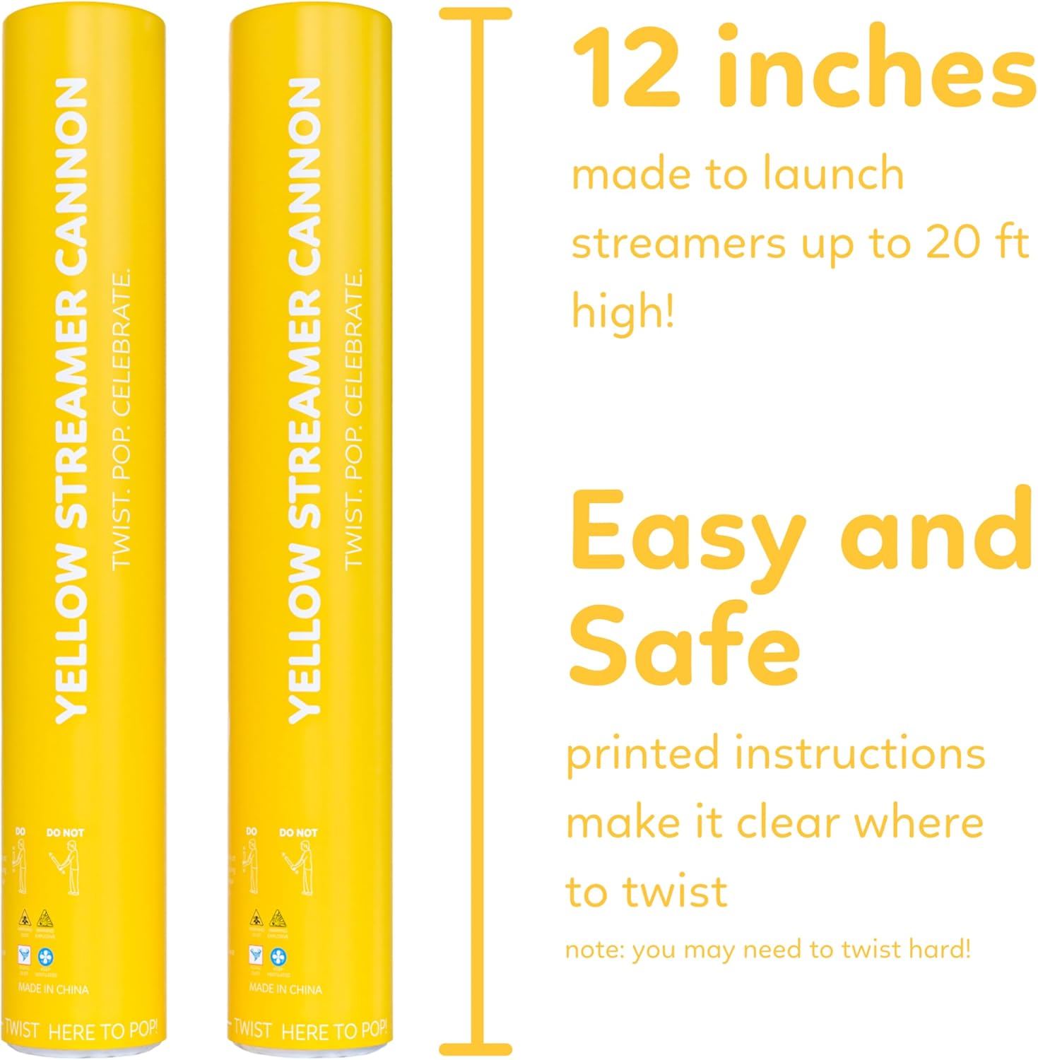 2 Pack Streamer Cannon Confetti Poppers | Biodegradable Yellow Confetti | TUR Party Supplies | Launches Up to 25ft | Giant (12 in) | Party Poppers for Graduation, Birthdays, Weddings, and Memorial Day
