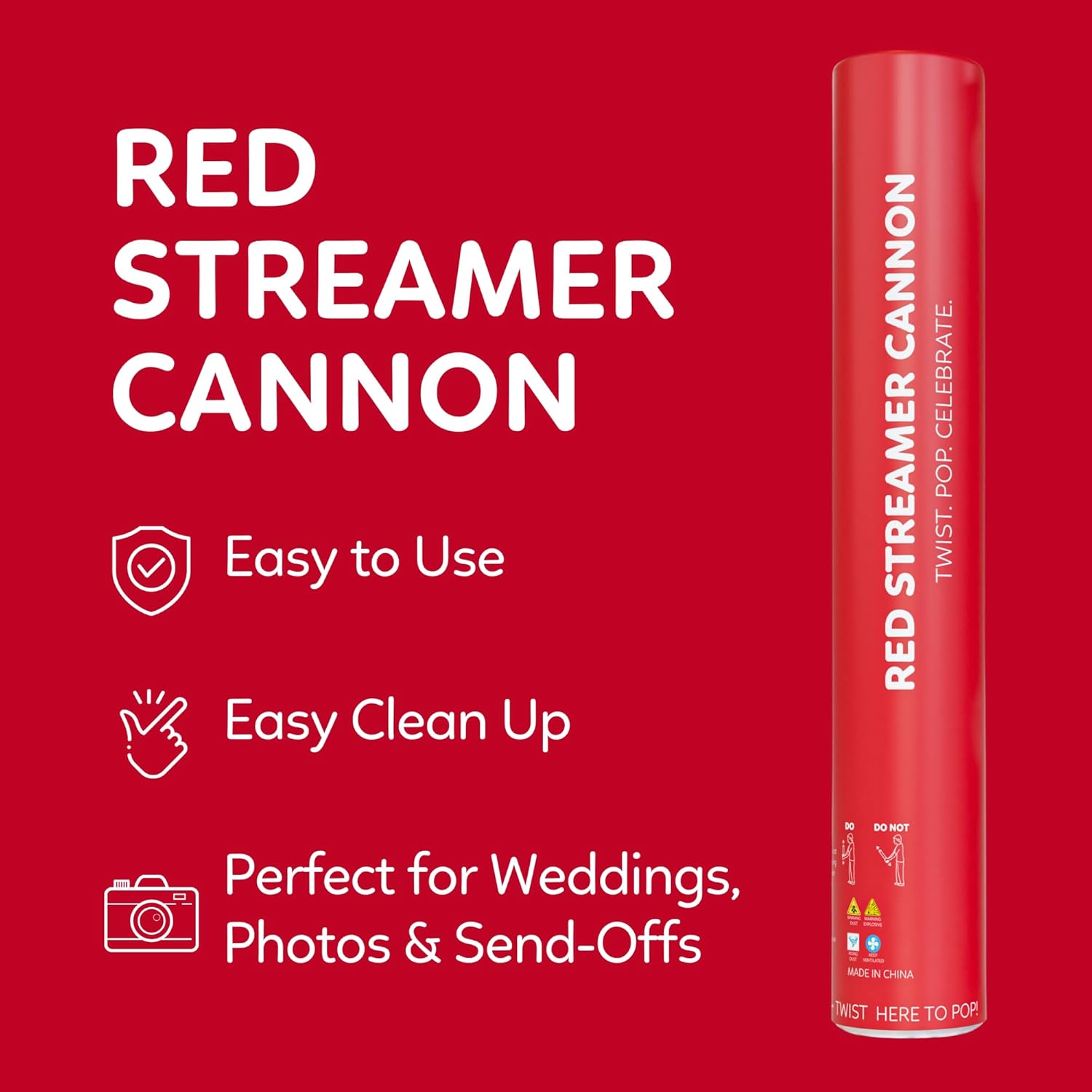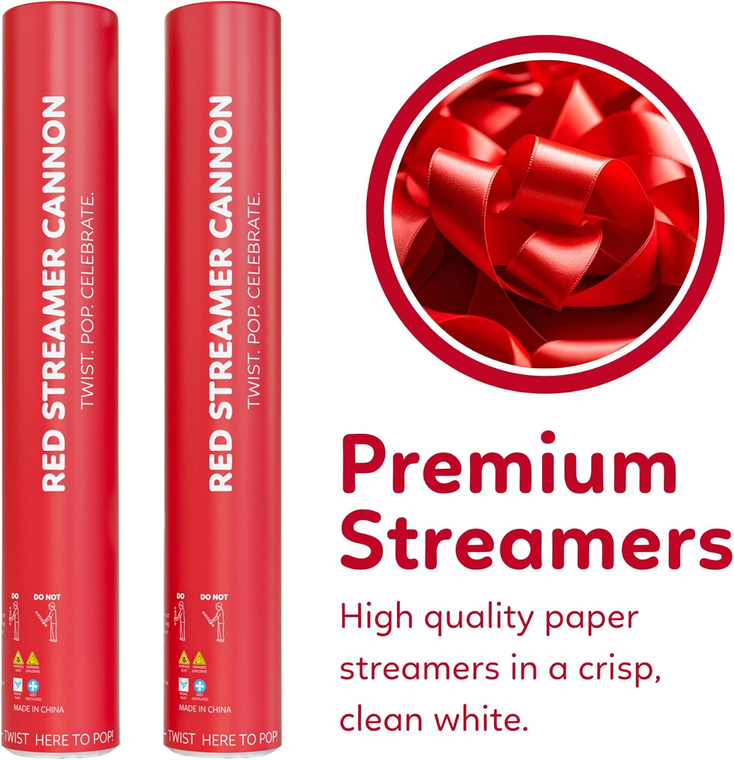 2 Pack Streamer Cannon Confetti Poppers | Biodegradable Red Confetti | TUR Party Supplies | Launches Up to 25ft | Giant (12 in) | Party Poppers for Graduation, Birthdays, Weddings, Valentine's