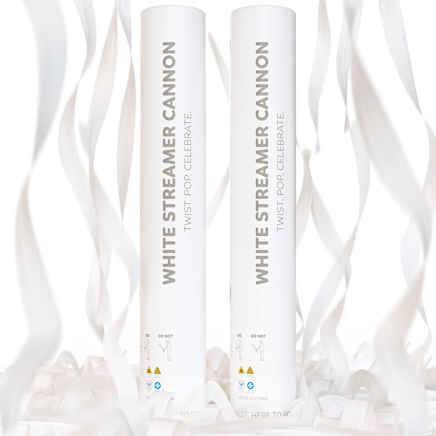 2 Pack Steamer Cannon Confetti Poppers | Biodegradable White Streamers | TUR Party Supplies | Launches Up to 25ft | Giant (12 in) | Party Poppers for Graduation, Birthdays, Weddings, and Memorial Day