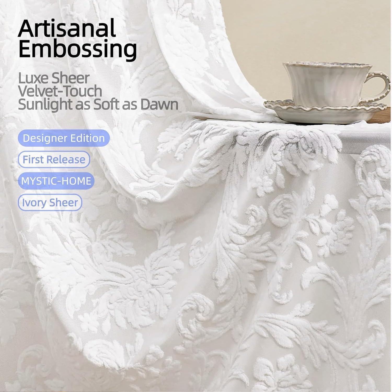 - 1. Elegant & Delicate Sheer Curtains Experience luxury sheer voile with exquisite craftsmanship—every stitch and thread reflects Parisian atelier quality. The 3D flocked texture and Rococo motifs add timeless elegance, while the weighted hem ensures effortless draping.