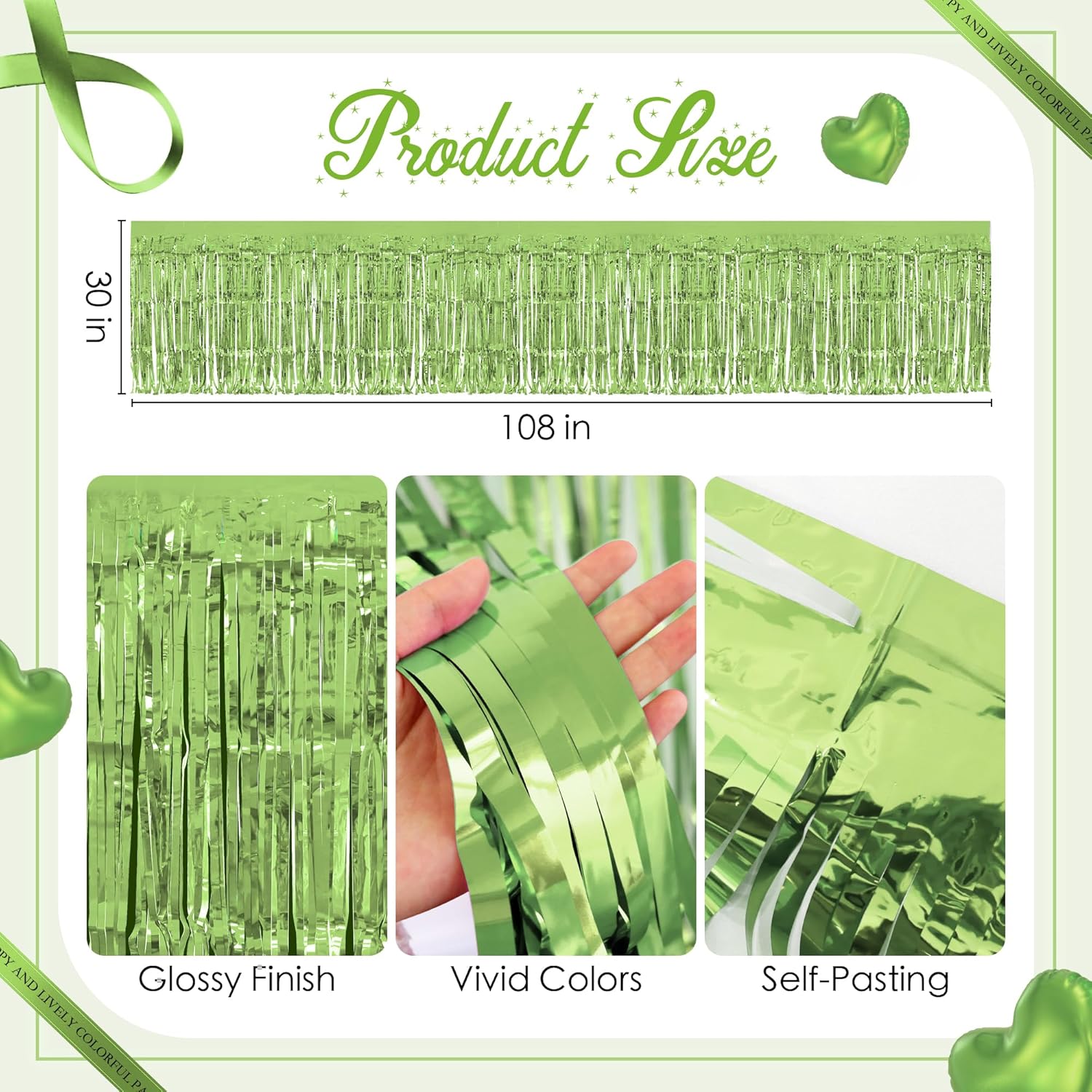 4 Pack Light Green Table Skirts, 29x108" Metallic Foil Tinsel Fringe Table Skirts for Rectangle Tables Streamer Curtains Backdrop, Party Decorations for Birthdays Weddings Holidays