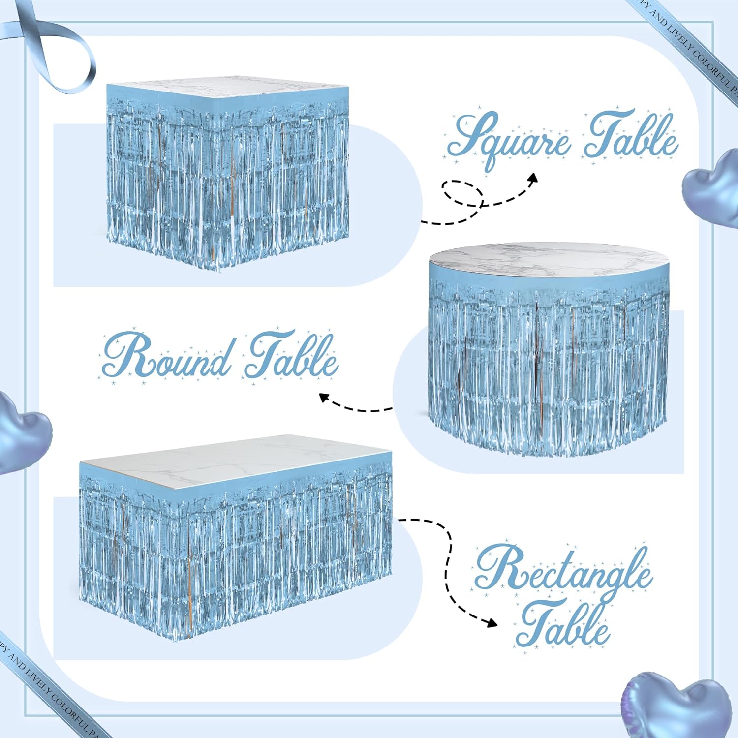 2 Pack Light Blue Table Skirts, 29x108" Metallic Foil Tinsel Fringe Table Skirts for Rectangle Tables Streamer Curtains Backdrop, Party Decorations for Birthdays Weddings Holidays