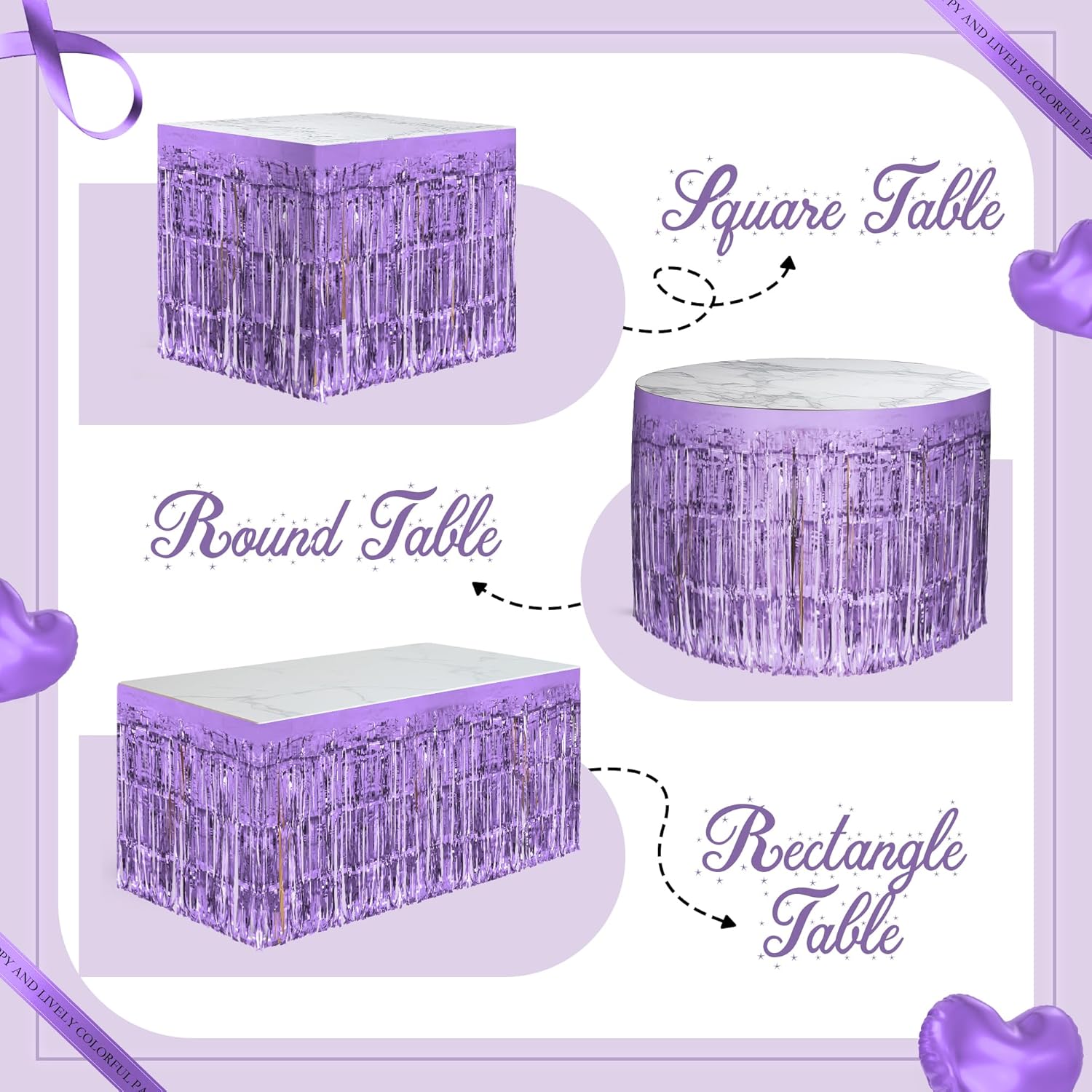 4 Pack Light Purple Table Skirts, 29x108" Metallic Foil Tinsel Fringe Table Skirts for Rectangle Tables Streamer Curtains Backdrop, Party Decorations for Birthdays Weddings Holidays