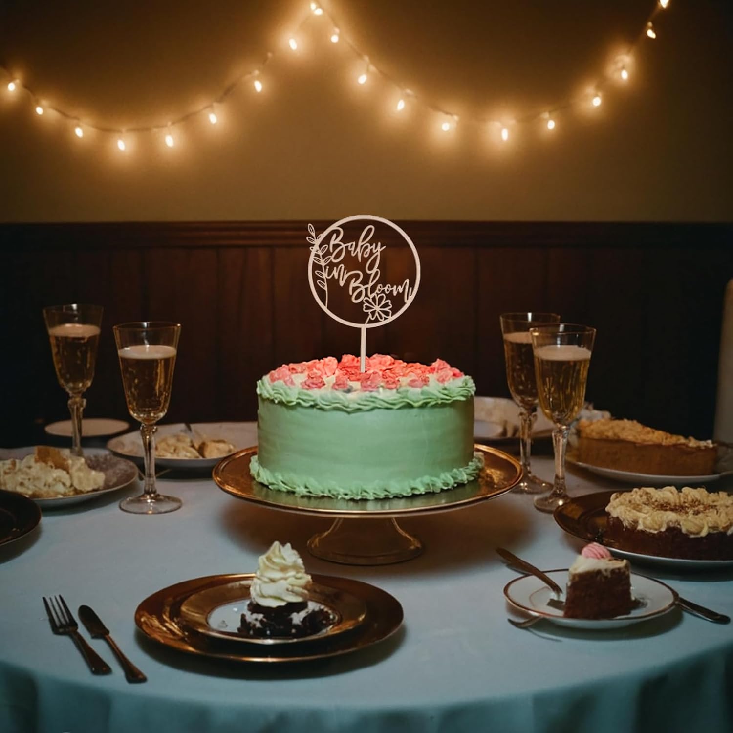 - Timeless Elegance: With its understated elegance, the Baby in Bloom Wood Cake Topper complements a broad spectrum of party themes. The wood's natural hue seamlessly blends with various decor styles, infusing your event with a sense of warmth and festivity