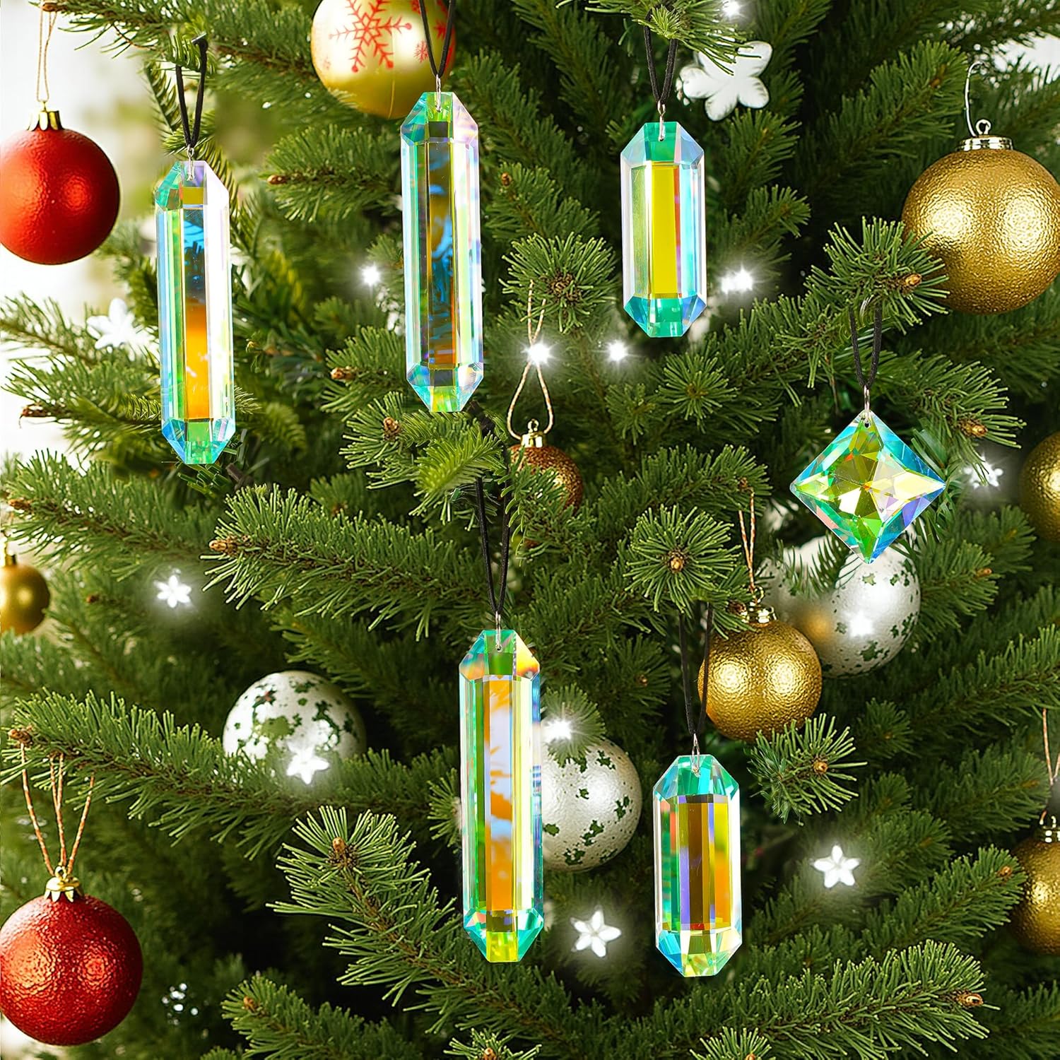 - Rainbow Prisms - This set includes 7 crystal sun catcher prisms with stunning AB colors, creating a mesmerizing display of rainbow hues when sunlight hits them