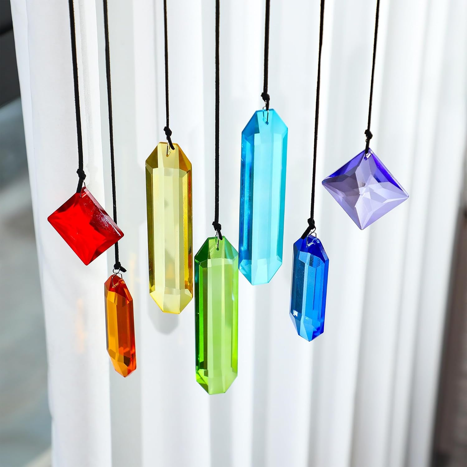HDCRYSTALGIFTS 7pcs Prisms Crystal Suncatchers for Windows Hanging Rainbow Maker Sun Catchers with Crystals Indoor Outdoor Home Garden Decor