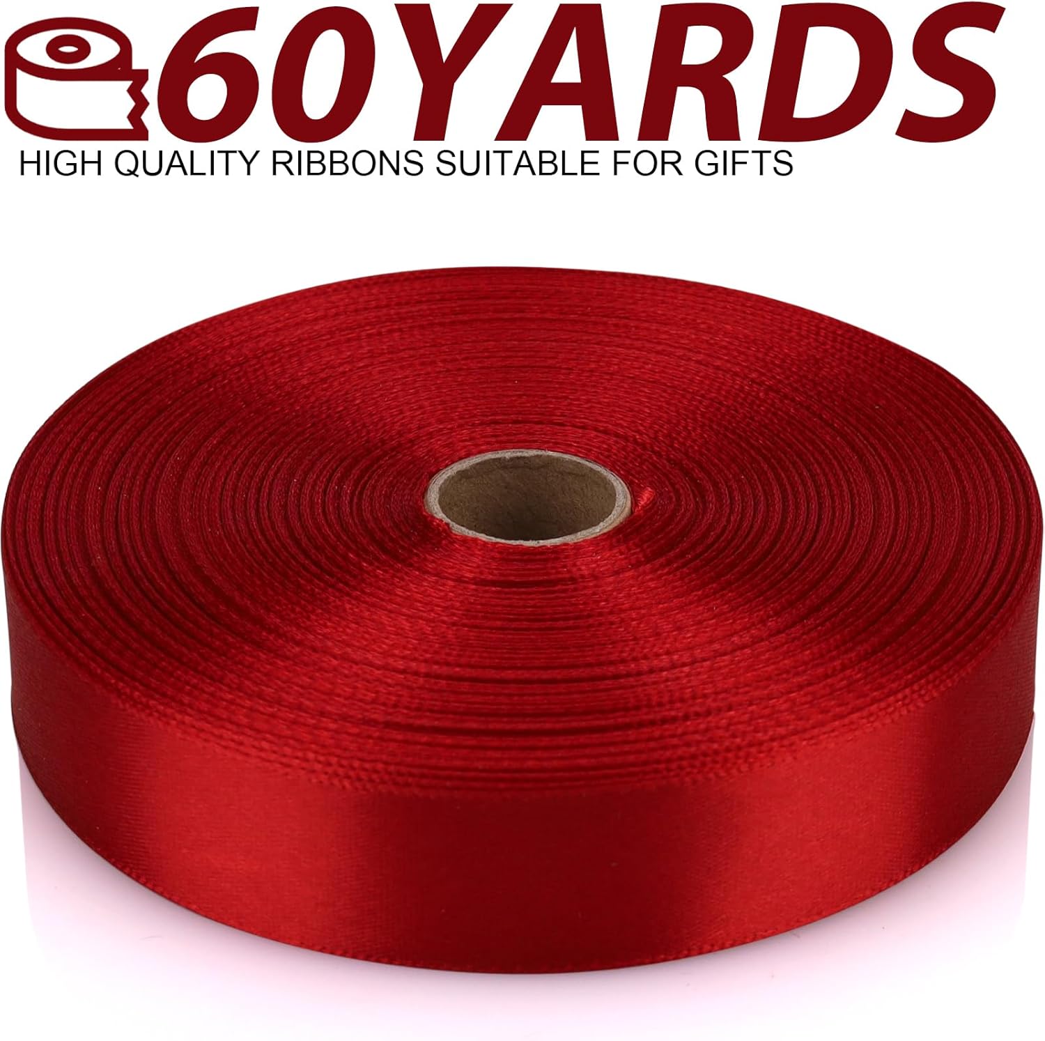 Wine Red 7/8 Inch 60 Yards Satin Craft Ribbon - Single Face Polyester Ribbon for Handmade Roses, Gift Wrapping, Timeless Flower, Bouquets, Wedding and Party Decoration
