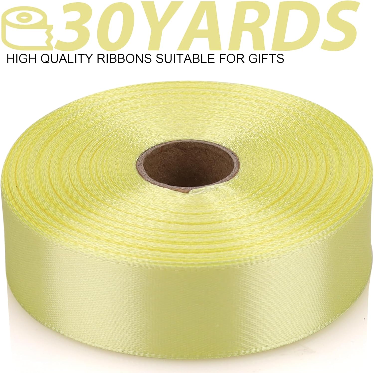 Rice Yellow Ribbon 7/8 Inch 30 Yards Satin Craft Ribbon-Single Face Polyester Ribbon for Handmade Roses,Gift Wrapping,Timeless Flower,Bouquets,Wedding and Party Decoration