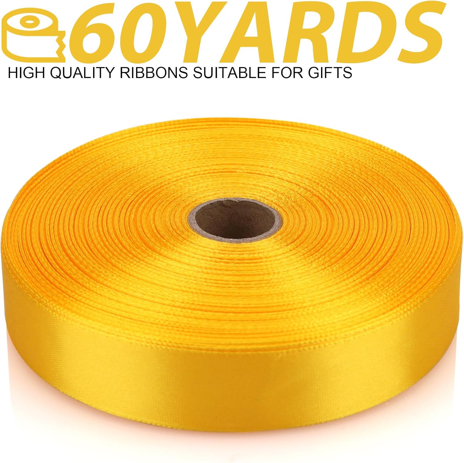 Yellow Ribbon 7/8 Inch 60 Yards Satin Craft Ribbon-Single Face Polyester Ribbon for Handmade Roses,Gift Wrapping,Timeless Flower,Bouquets,Wedding and Party Decoration