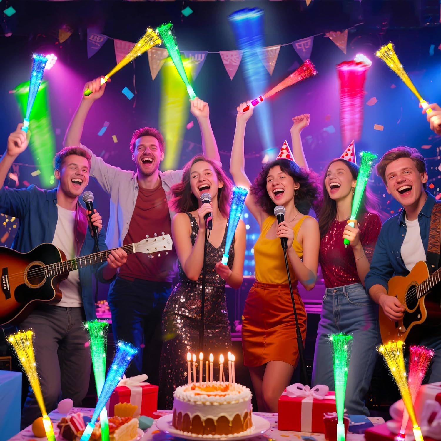 - 🌟【Large Glow sticks bulk party supplies 】Our pack include light up wand.The fiber optic wand have sufficient quantity and multiple colors,nice for glow stringing, freehand and light shows performances at party or music concert.It's cooler than the normal lights, so you can hold it up and move your body following the music.