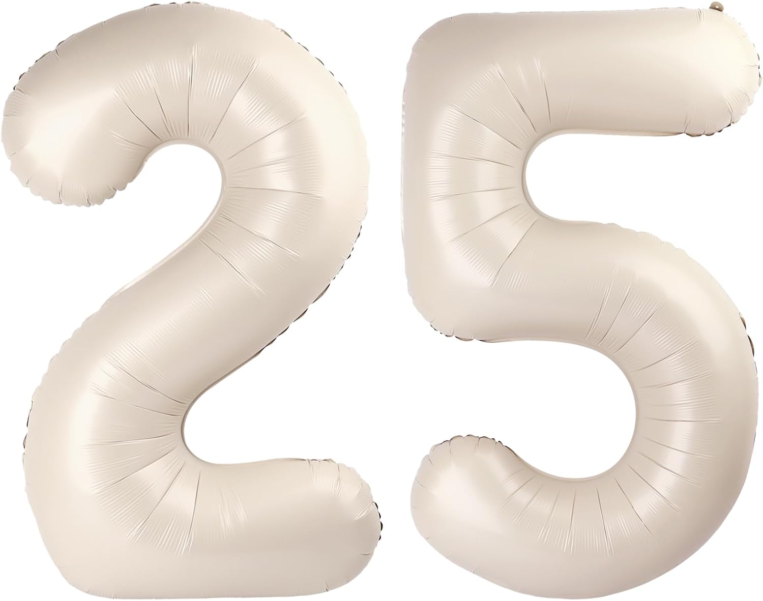 - 1.Elegant Understated Cream White Number Balloons:You will receive an uninflated cream white 40 inch number 25 balloon.Balloons are always the best statement of romance and surprise.Cream white balloons symbolize vitality and exoticism,adding glamour to birthday parties.Bright metallic cream white and huge size make cream white balloon a highlight of special parties.Choose one or more numbers from 0-9 number balloon,and use 25 52 balloons number to create a lively and charming party!