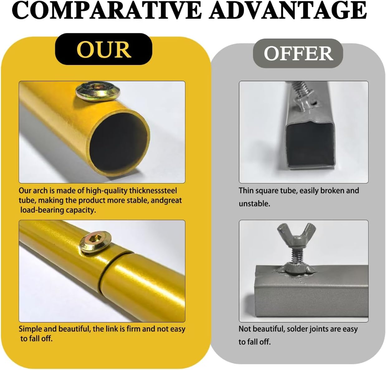- 【 High quality, easy to assemble 】: The arch is of superior quality and made of sturdy, lightweight, and rust resistant metal steel pipes. It is golden in color and very sturdy. This open background wall bracket has higher load-bearing capacity and can be easily assembled and disassembled with screws and buckles in a few minutes, making it easy to carry and place anywhere. Very suitable for wedding arches, flower arches, and other celebratory events with and flower backgrounds