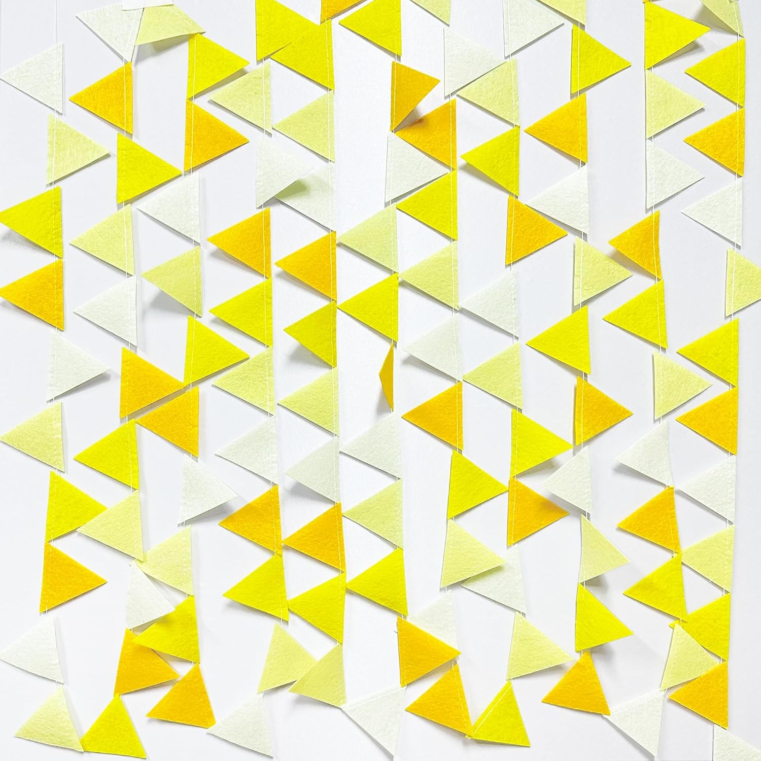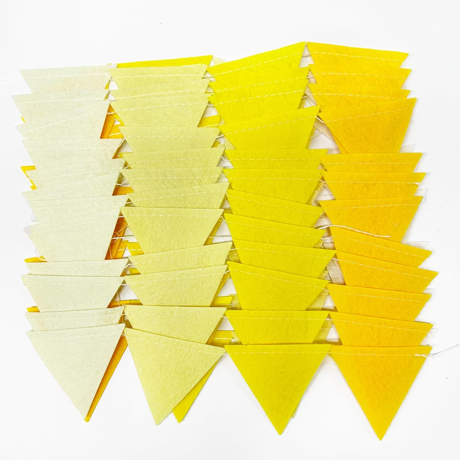 - 🟡Easy Assembly - Easy hanging and reusable.Perfect fit for gradient yellow party decor.unroll and unwrap garland carefully. due to delicate nature of thread,may tangle.This yellow mini triangle pennant makes an attractive backdrop for videos and photos.