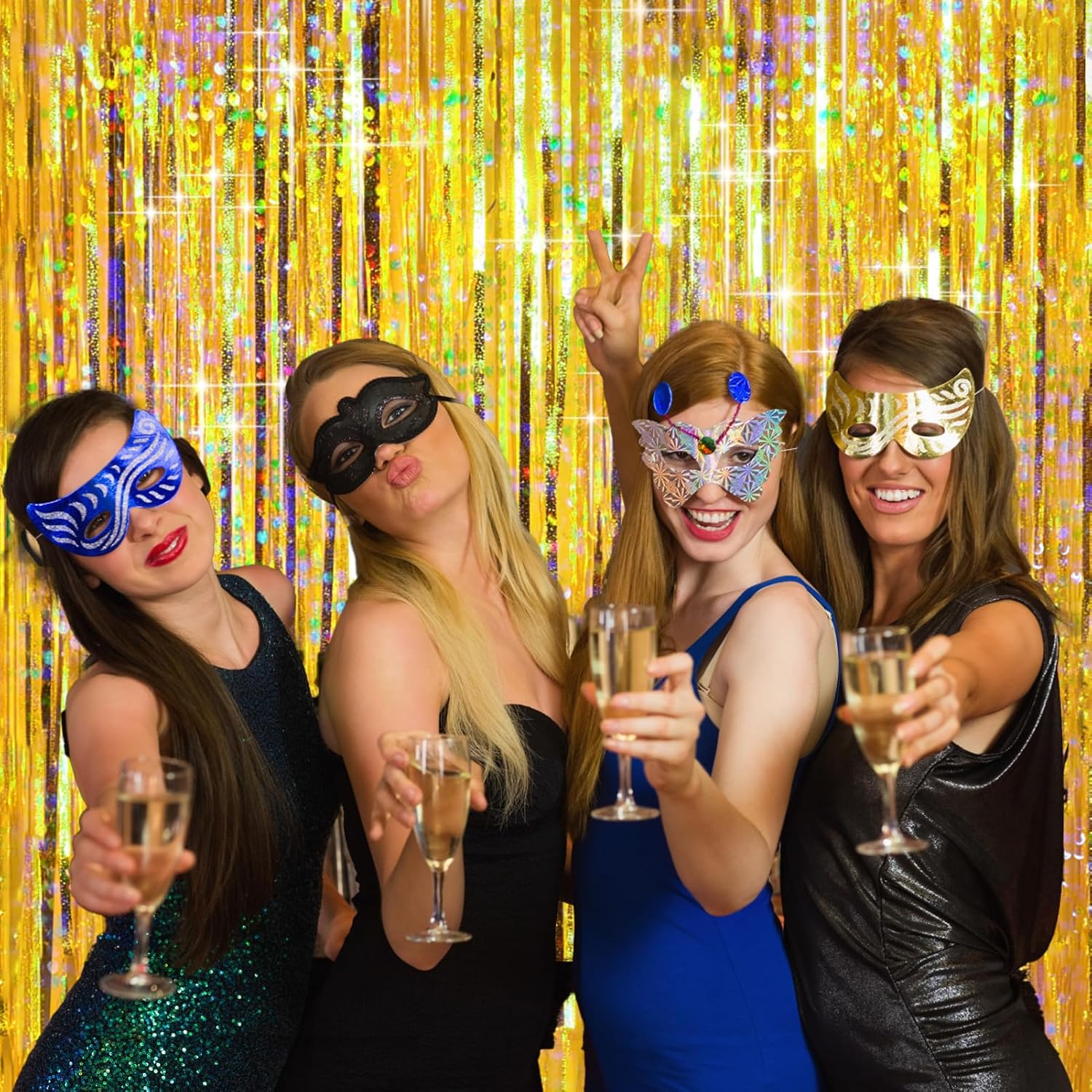 4 Packs Gold Foil Fringe Curtain, Gold Glitter Metallic Tinsel Backdrop for Birthday, Wedding, Baby Shower, Bachelorette, Graduation, Christmas, New Years Eve Party Decorations Supplies