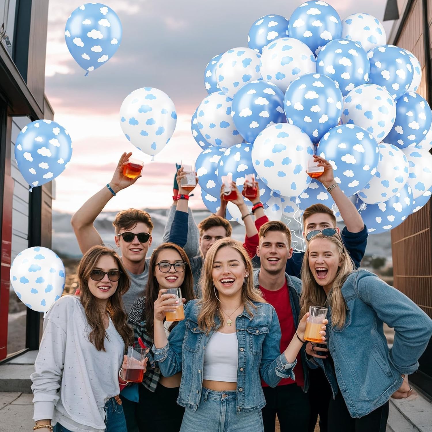 - 12 inch Cloud Balloons: 52 Pcs cloud balloons set including 25* blue cloud printed balloons, 25* white cloud printed balloons, 2* white ribbons. Whether it’s a baby shower, birthday party, or any theme celebration, these balloons will bring a unique visual appeal to your venue.