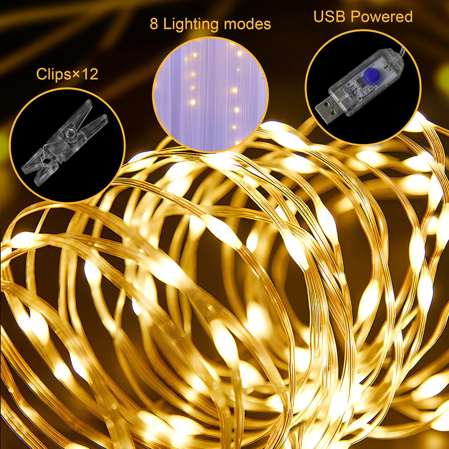 - Easy to Set: light curtain backdrop with rod pockets at the top for easy hanging on backdrop stand, attach the string lights to the sheer backdrop curtains with plastic clips, then untie the 10 light strings and plug the curtains lights into a portable external batteries or an outlet with a USB port. Note: Put away from sharp items to avoid causing the curtain with lights damaged.